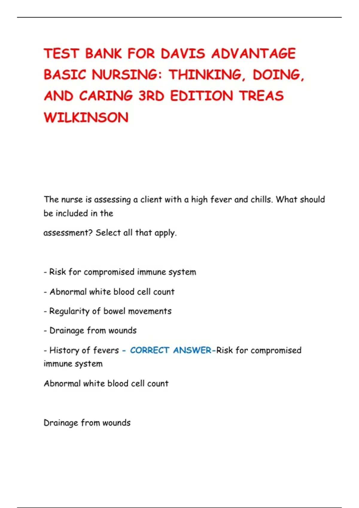TEST BANK FOR DAVIS ADVANTAGE