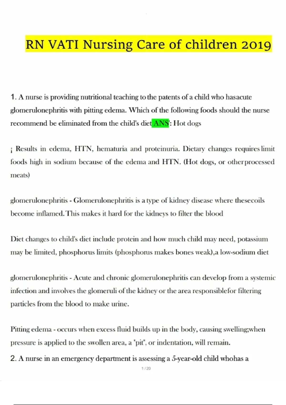 Master the RN VATI Nursing Care of Children 2019 exam with this fully updated graded A+ guide! Featuring verified questions and detailed answers, this comprehensive resource is ideal for nursing and healthcare students. Includes updated practice questions, clear explanations, and strategic tips to ensure full mastery of pediatric nursing concepts. Perfect for self-study, exam readiness, and achieving top scores, this guide equips students with the knowledge and confidence to succeed in the RN VATI Nursing Care of Children exam.