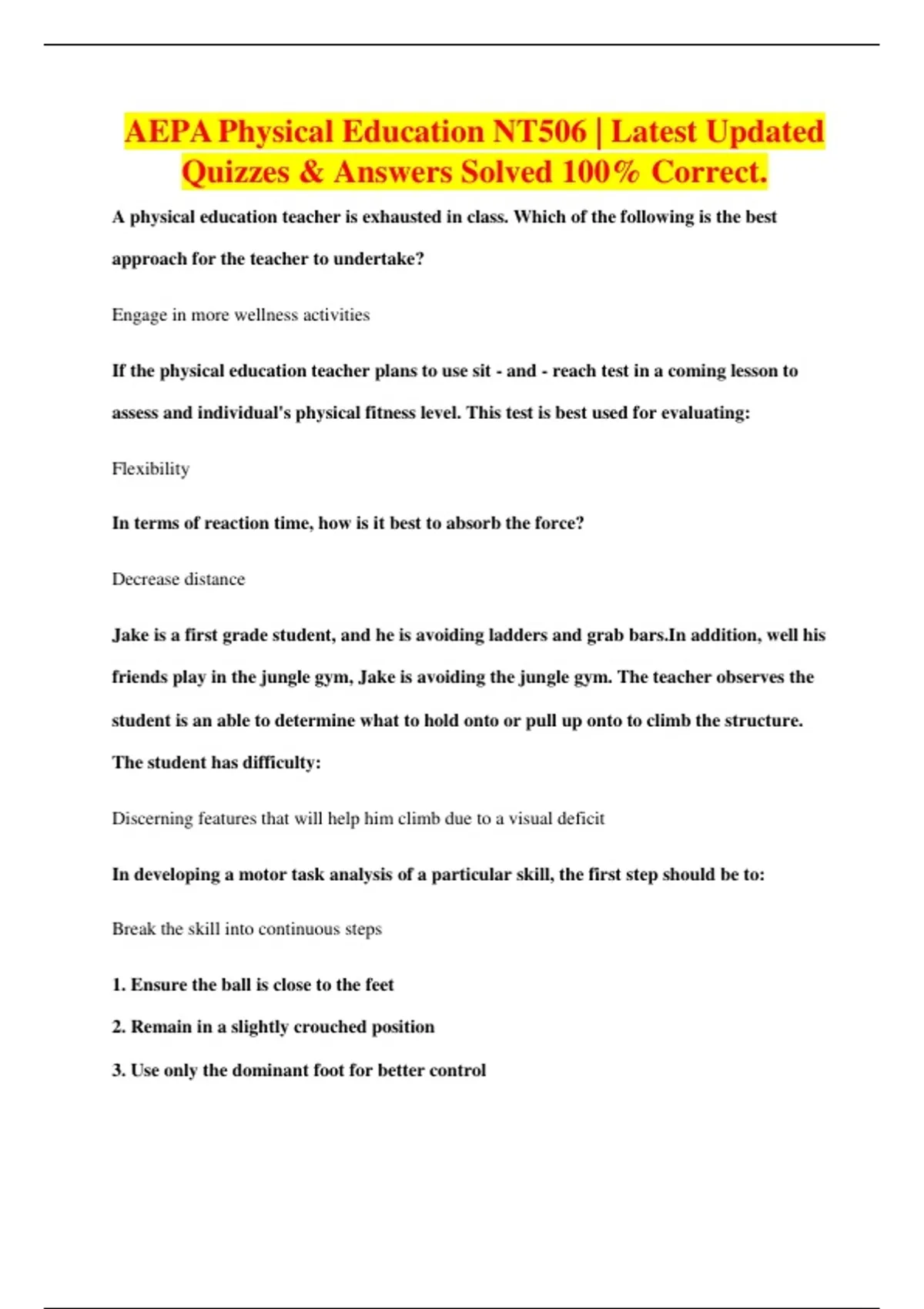AEPA Physical Education NT506 | Latest Updated Quizzes & Answers Solved 100% Correct.