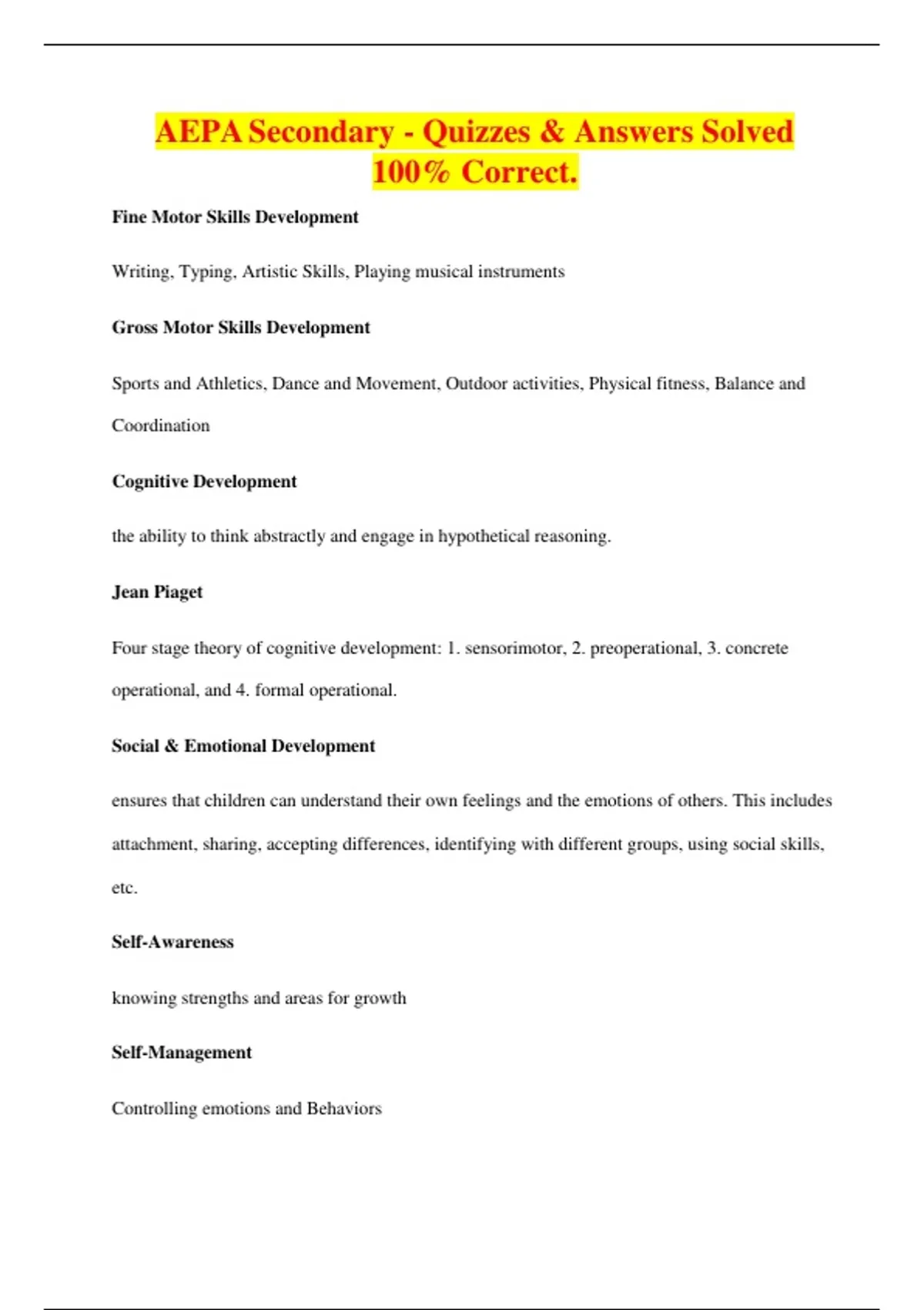 AEPA Secondary - Quizzes & Answers Solved 100% Correct.
