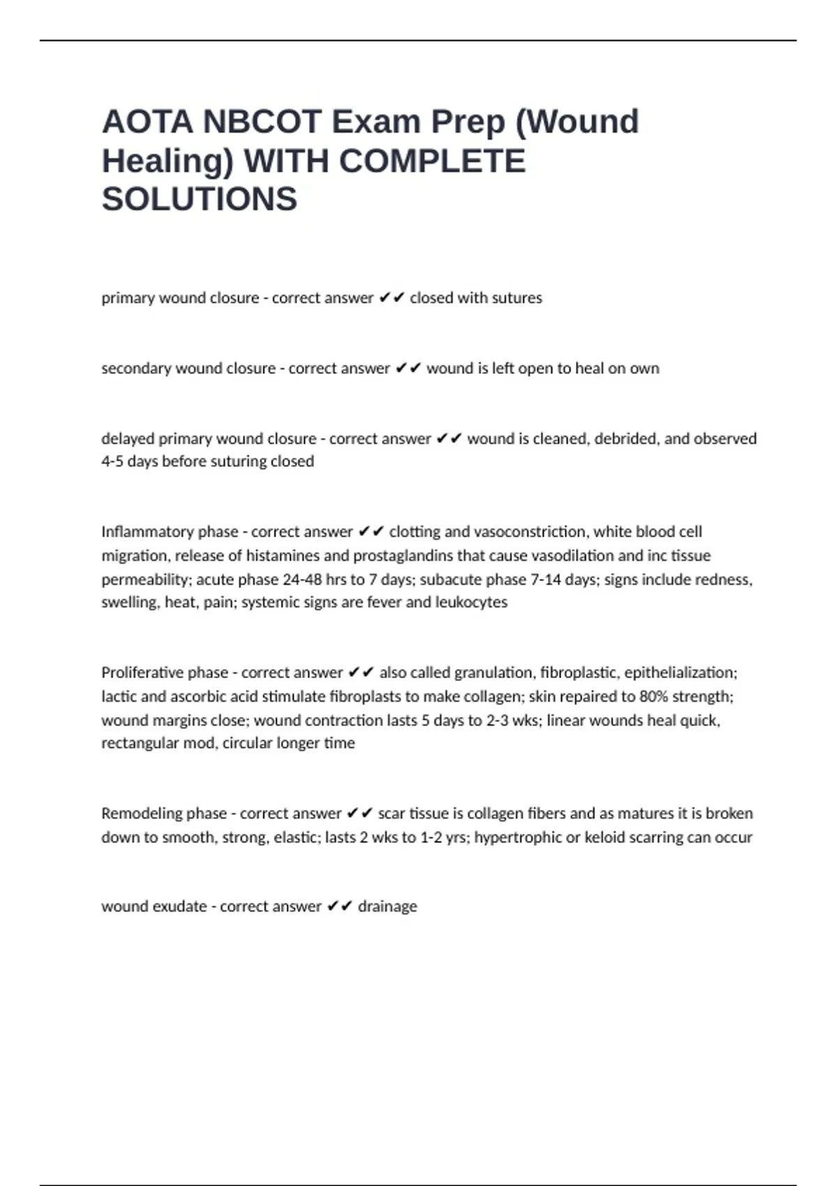 AOTA NBCOT Exam Prep (Wound Healing) WITH COMPLETE SOLUTIONS
