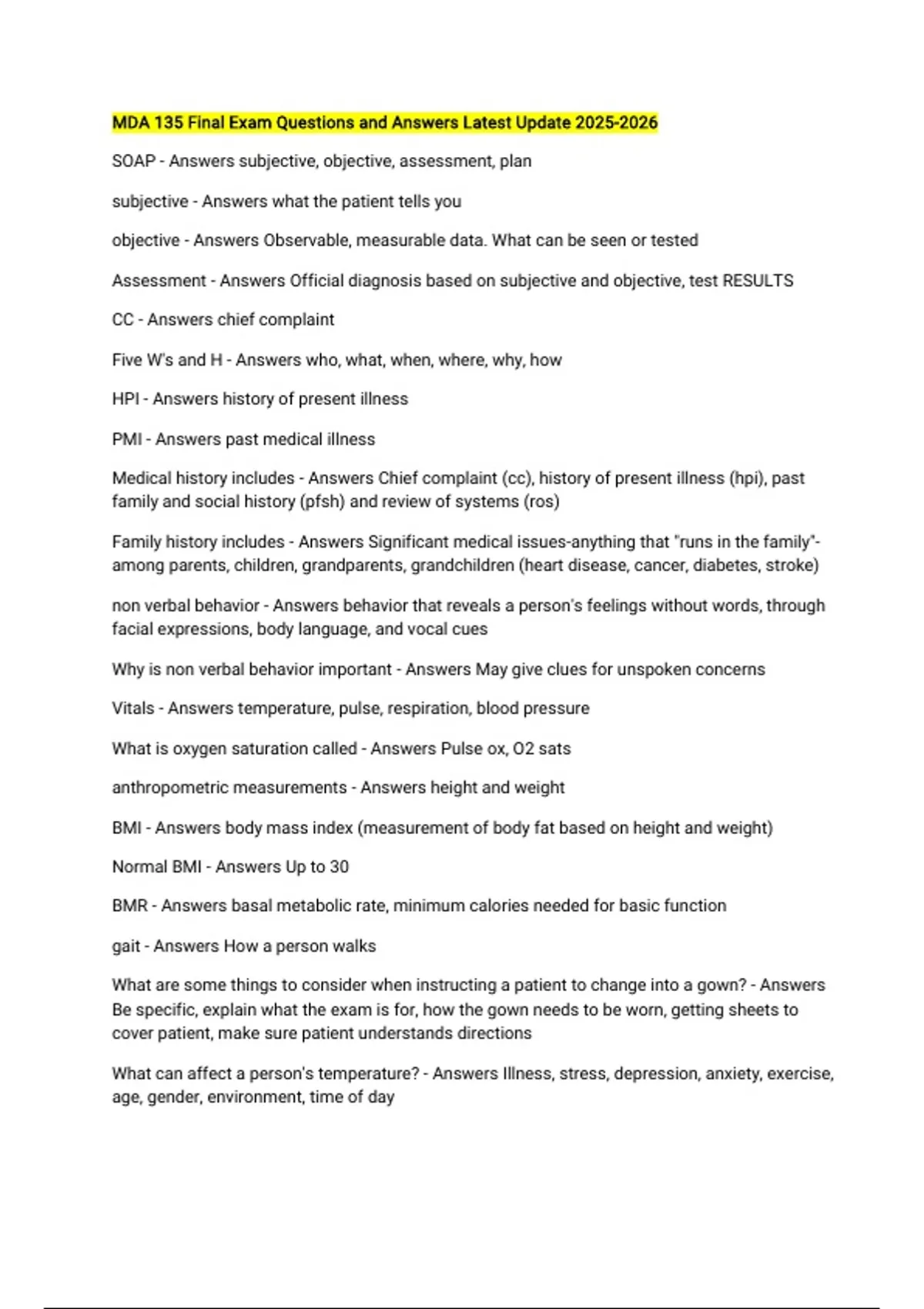 Assessment - Answers Official diagnosis based on subjective and objective, test RESULTS