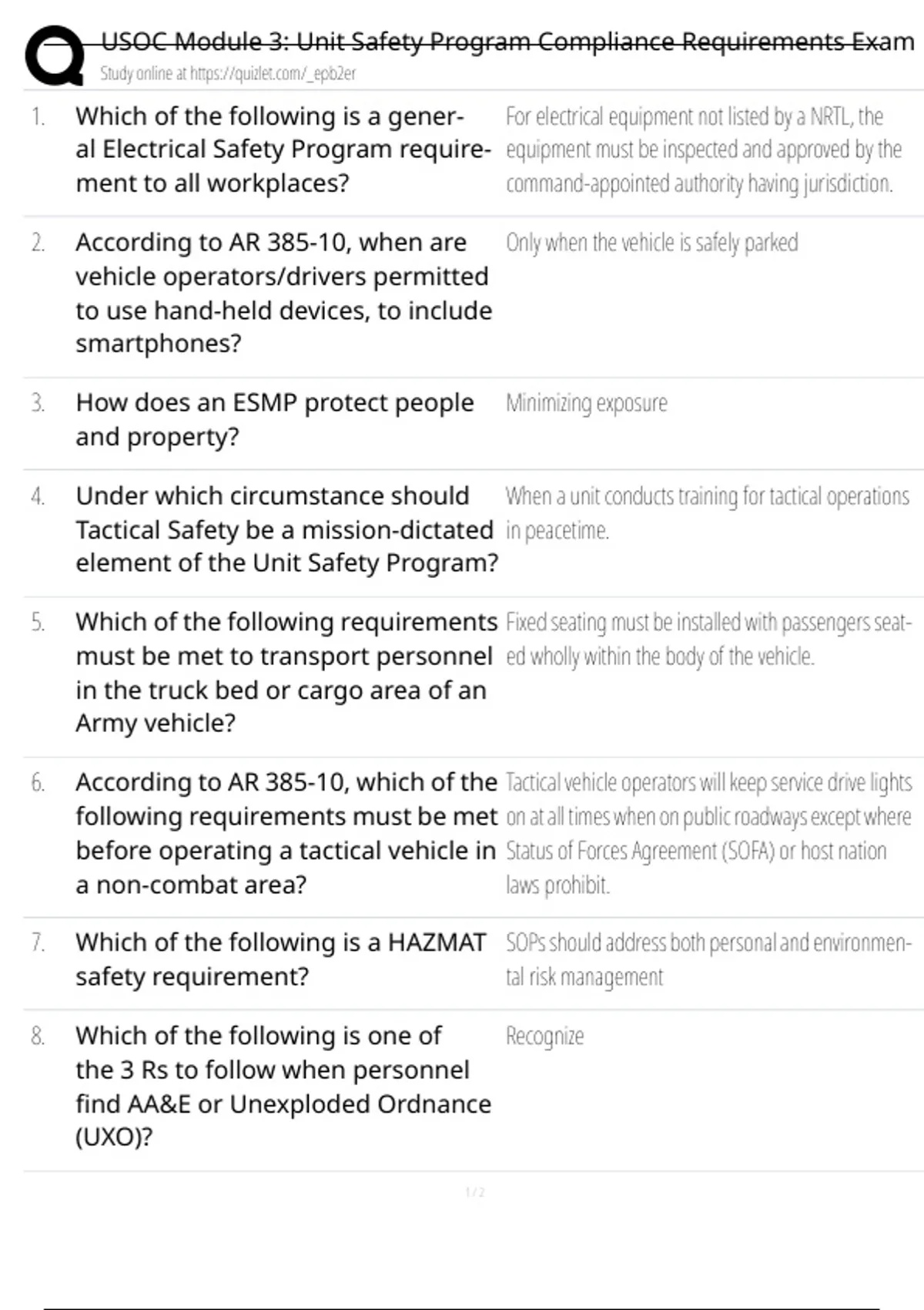 USOC Module 3: Unit Safety Program Compliance Requirements Exam