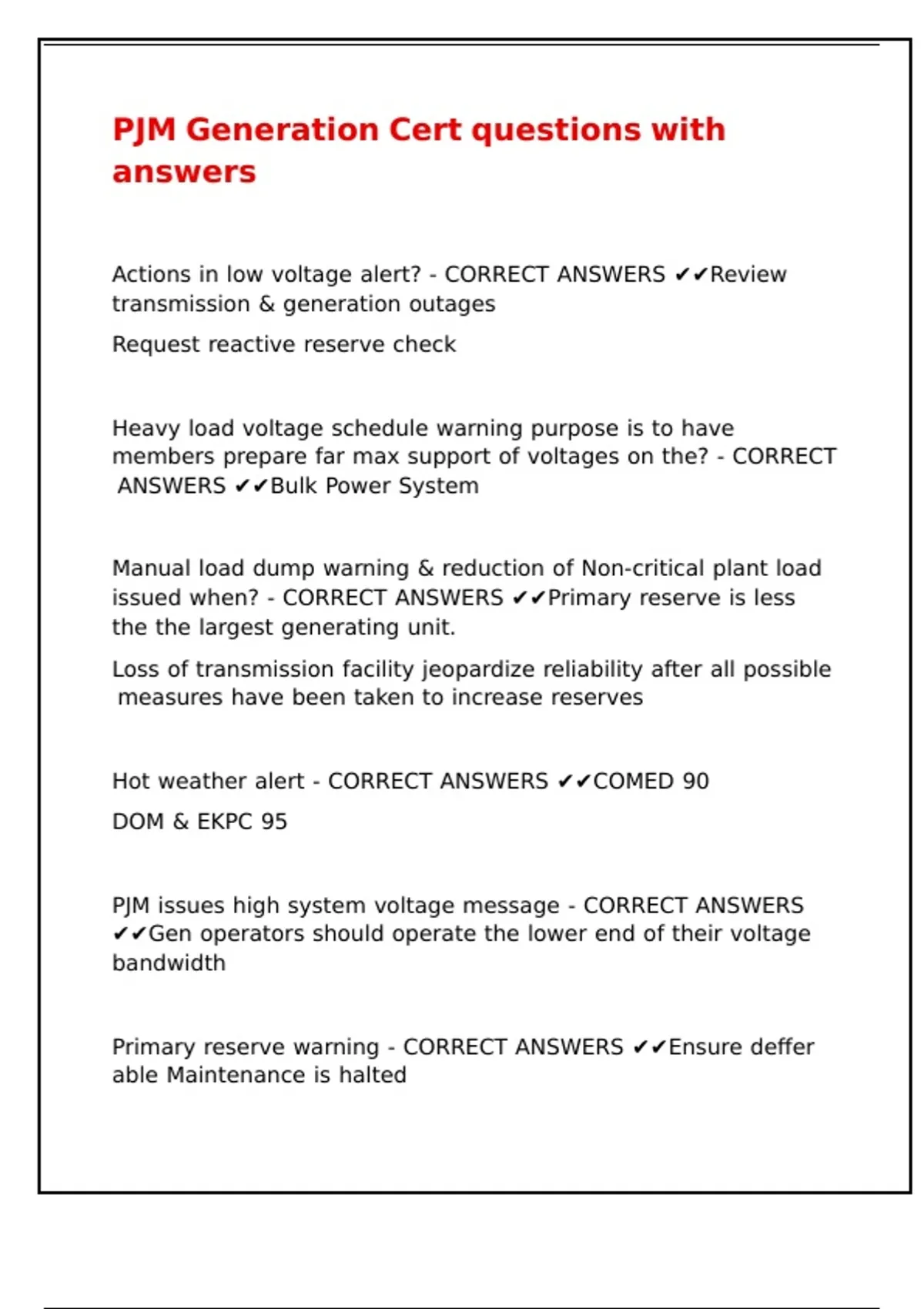 PJM issues high system voltage message - CORRECT ANSWERS