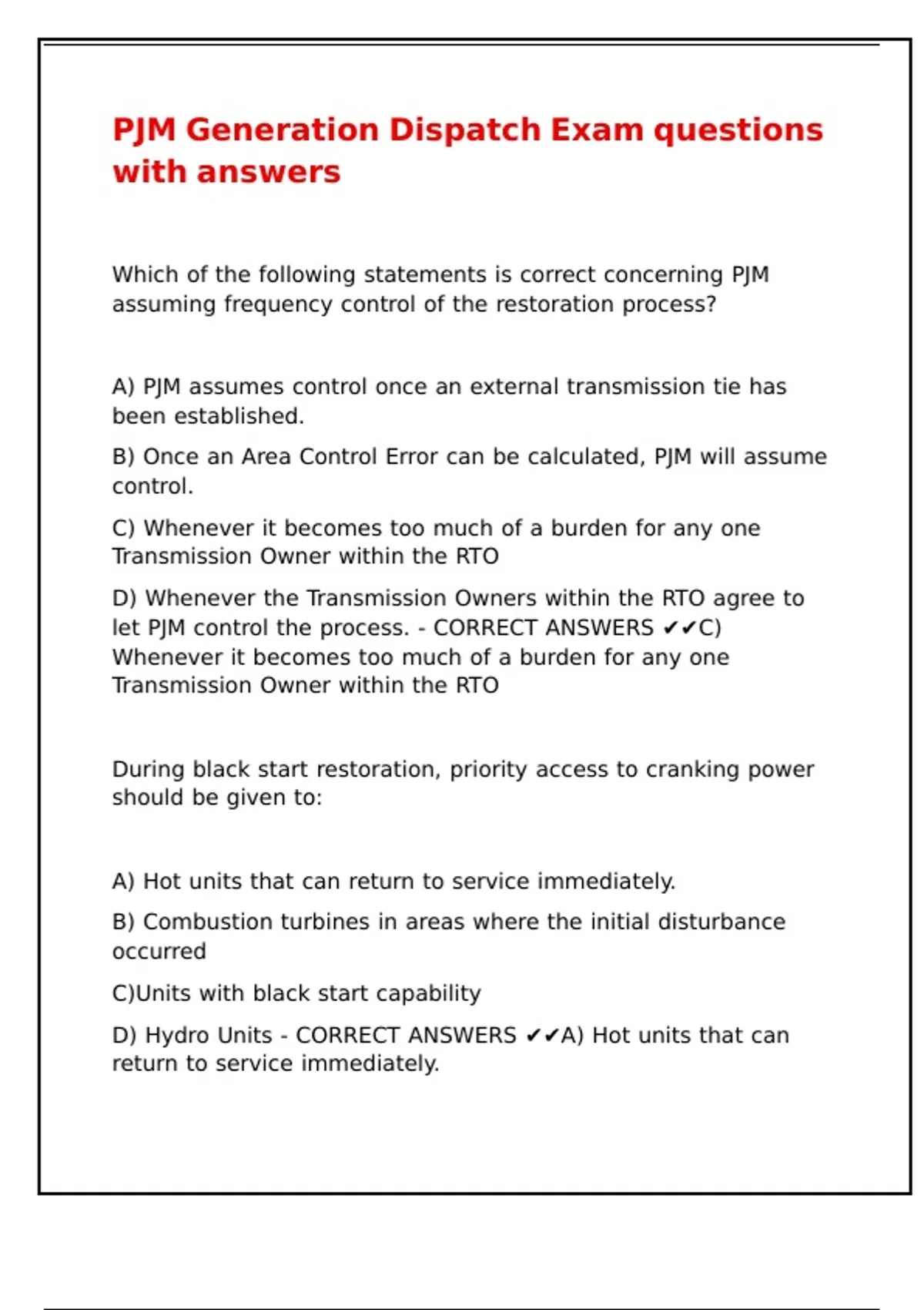 let PJM control the process. - CORRECT ANSWERS ✔✔C)