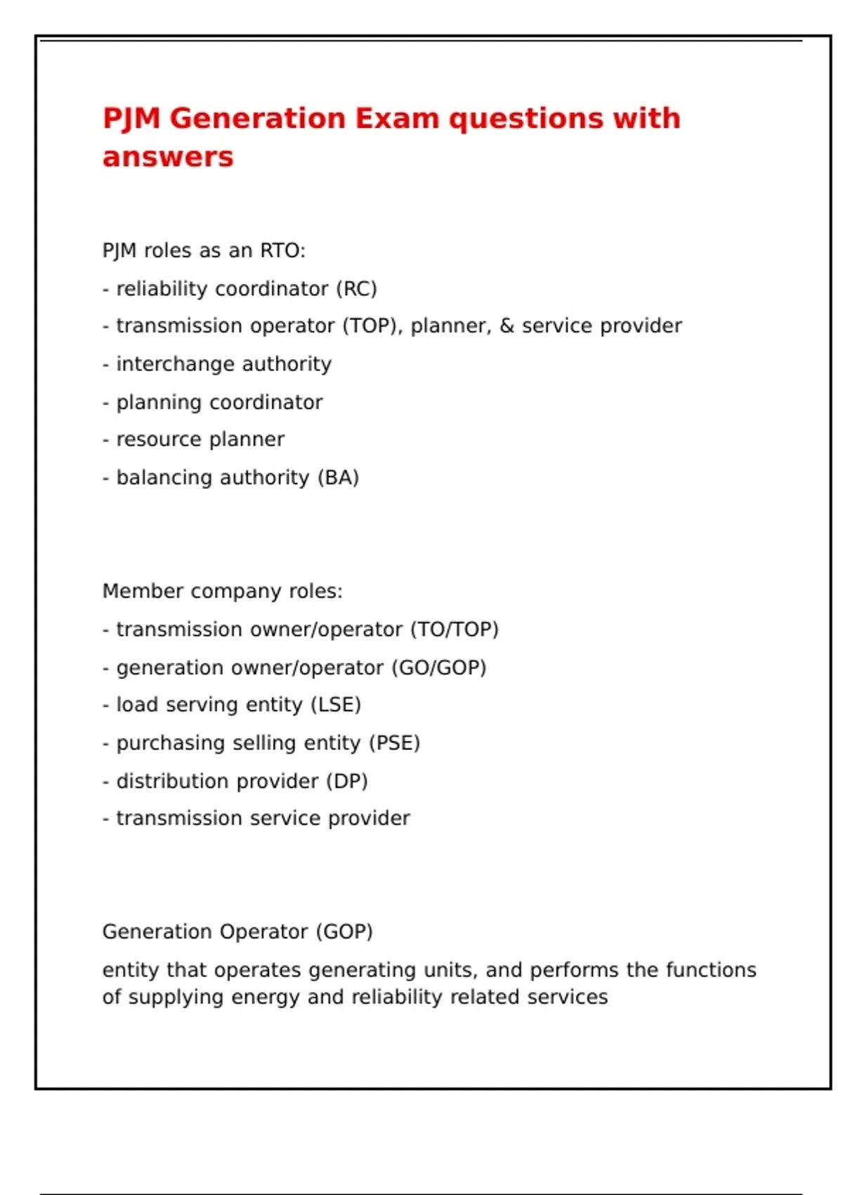 - generation owner/operator (GO/GOP)