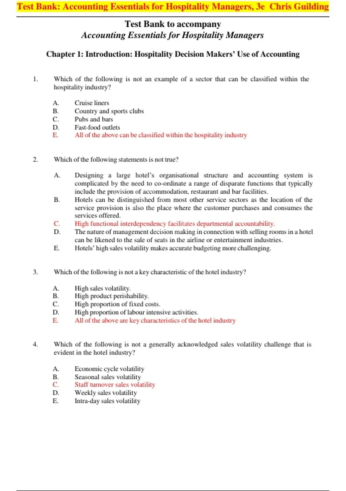 E. Hotels’ high sales volatility makes accurate budgeting more challenging.