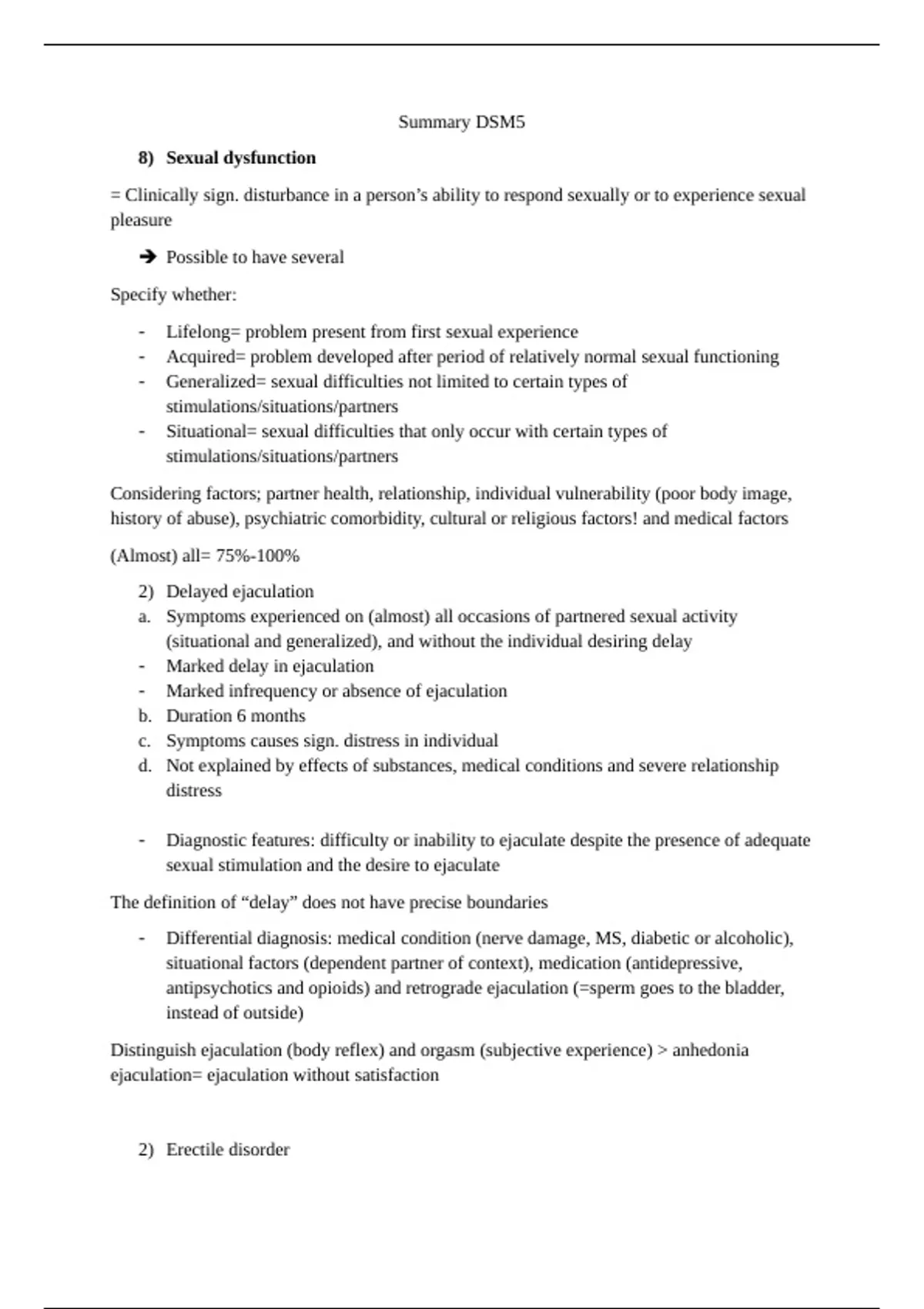 Een samenvatting van de DSM-5 voor het vak psychopathologie, inclusief de meeste colleges