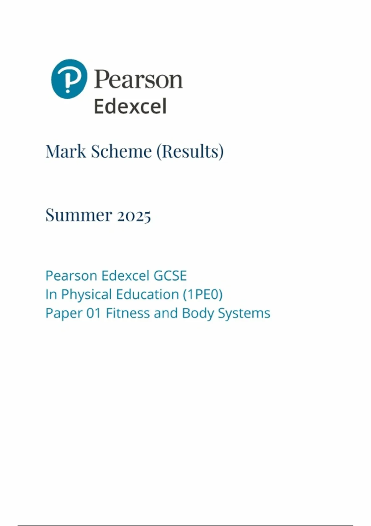 2025 Pearson Edexcel GCSE Physical Education PAPER MARK SCHEME : Fitness and Body System (1PE0/01