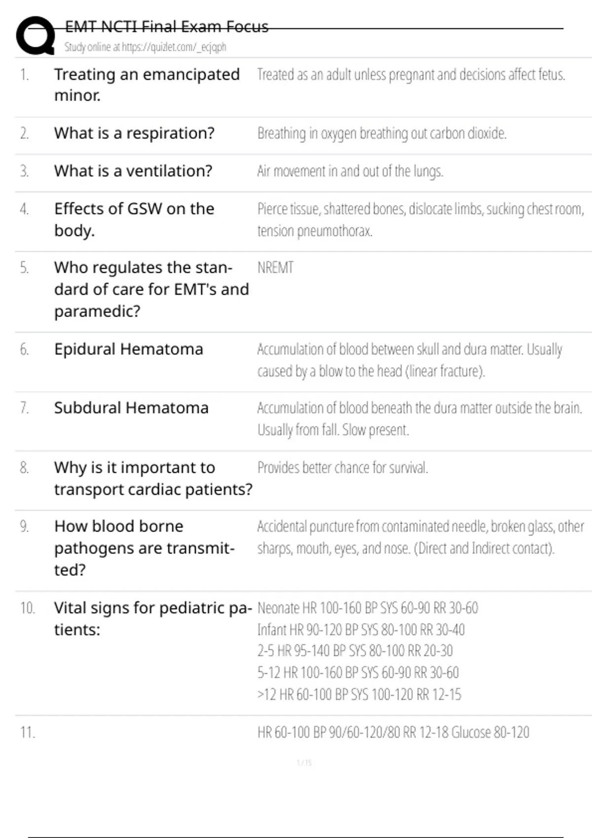 , EMT NCTI Final Exam Focus
