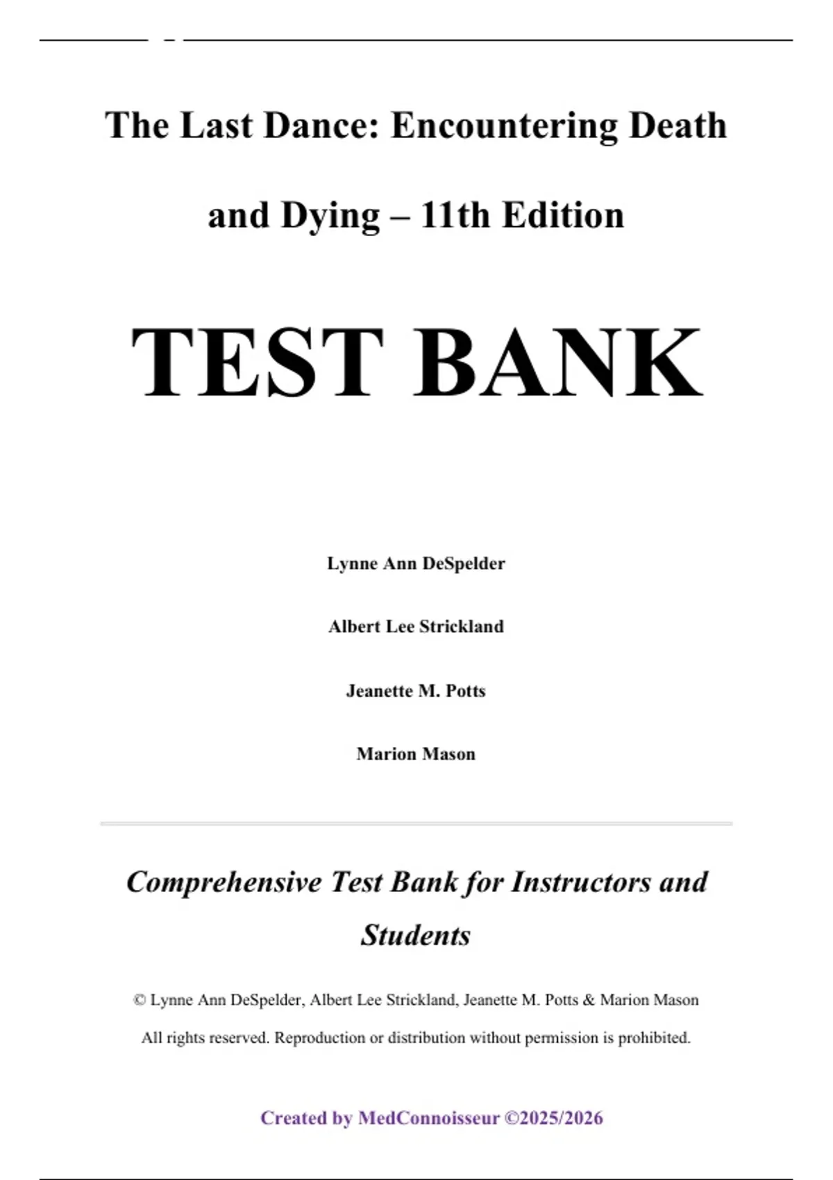 ,Test Bank for The Last Dance: Encountering Death and Dying, 11th Edition by Lynn