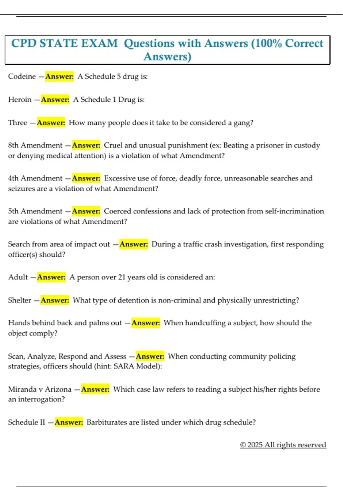 CPD STATE EXAM Questions with Answers (100% Correct Answers)