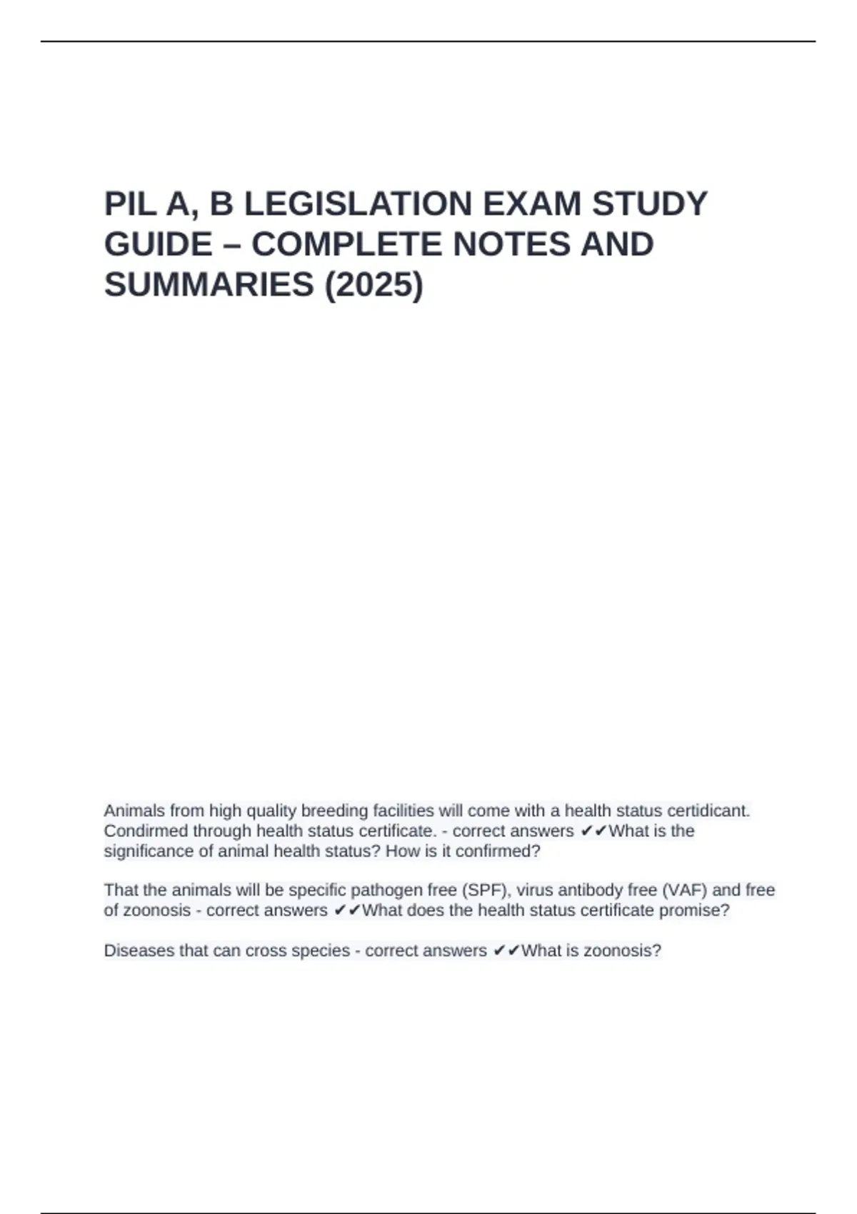 of zoonosis - correct answers ✔✔What does the health status certificate promise?