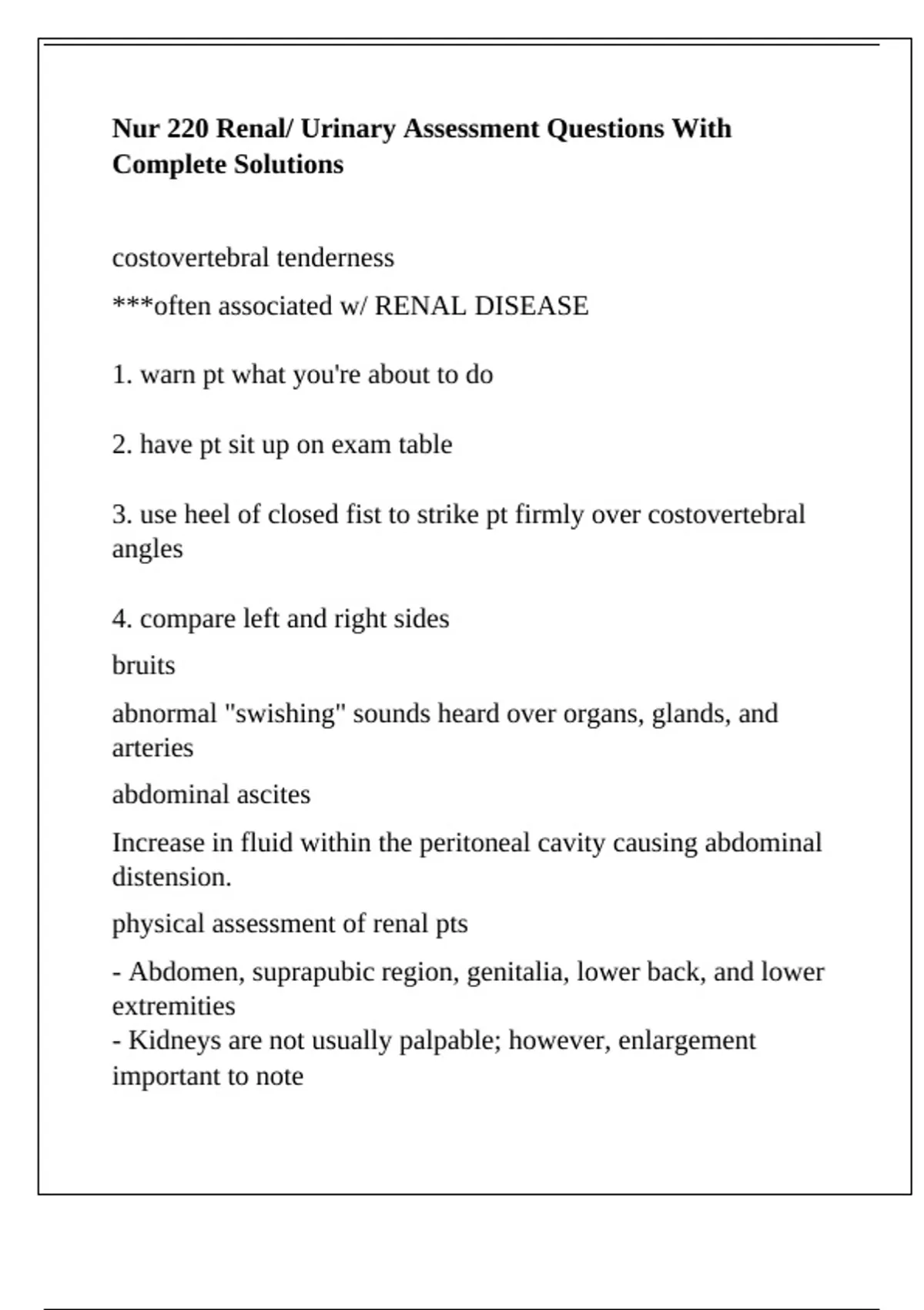 physical assessment of renal pts