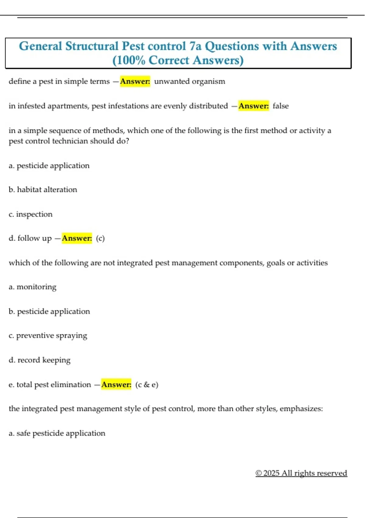 e. total pest elimination —Answer: (c & e)