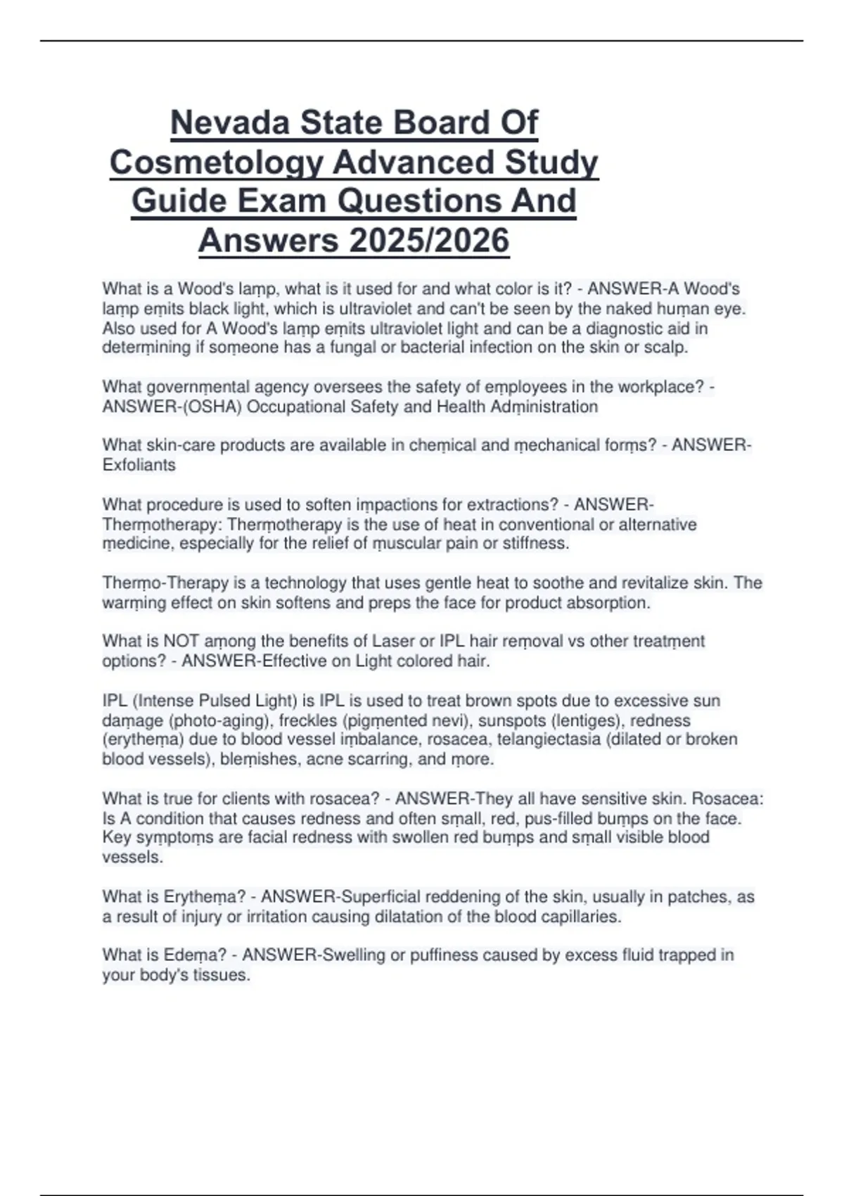 What is true for clients with rosacea? - ANSWER-They all have sensitive skin. Rosacea: