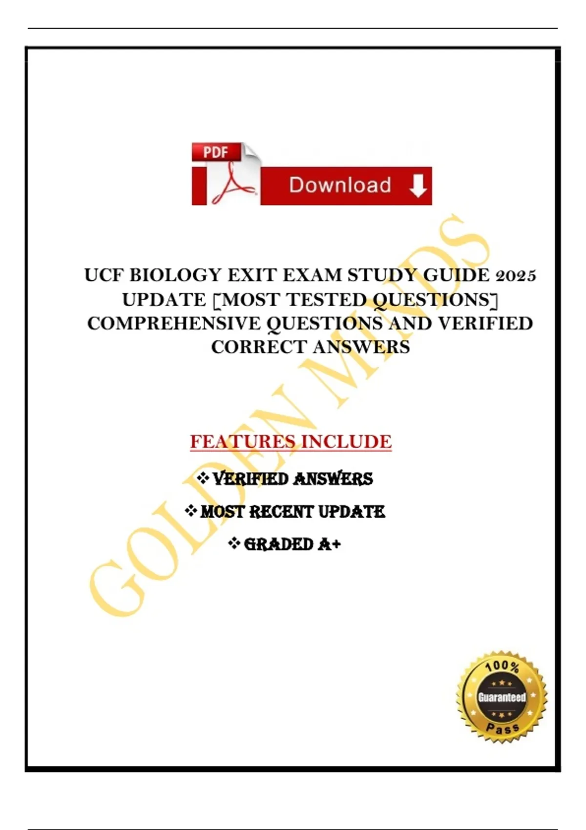 UCF BIOLOGY EXIT EXAM STUDY GUIDE 2025 UPDATE [MOST TESTED QUESTIONS] COMPREHENSIVE QUESTIONS AND VERIFIED CORRECT ANSWERS . GRADED A+