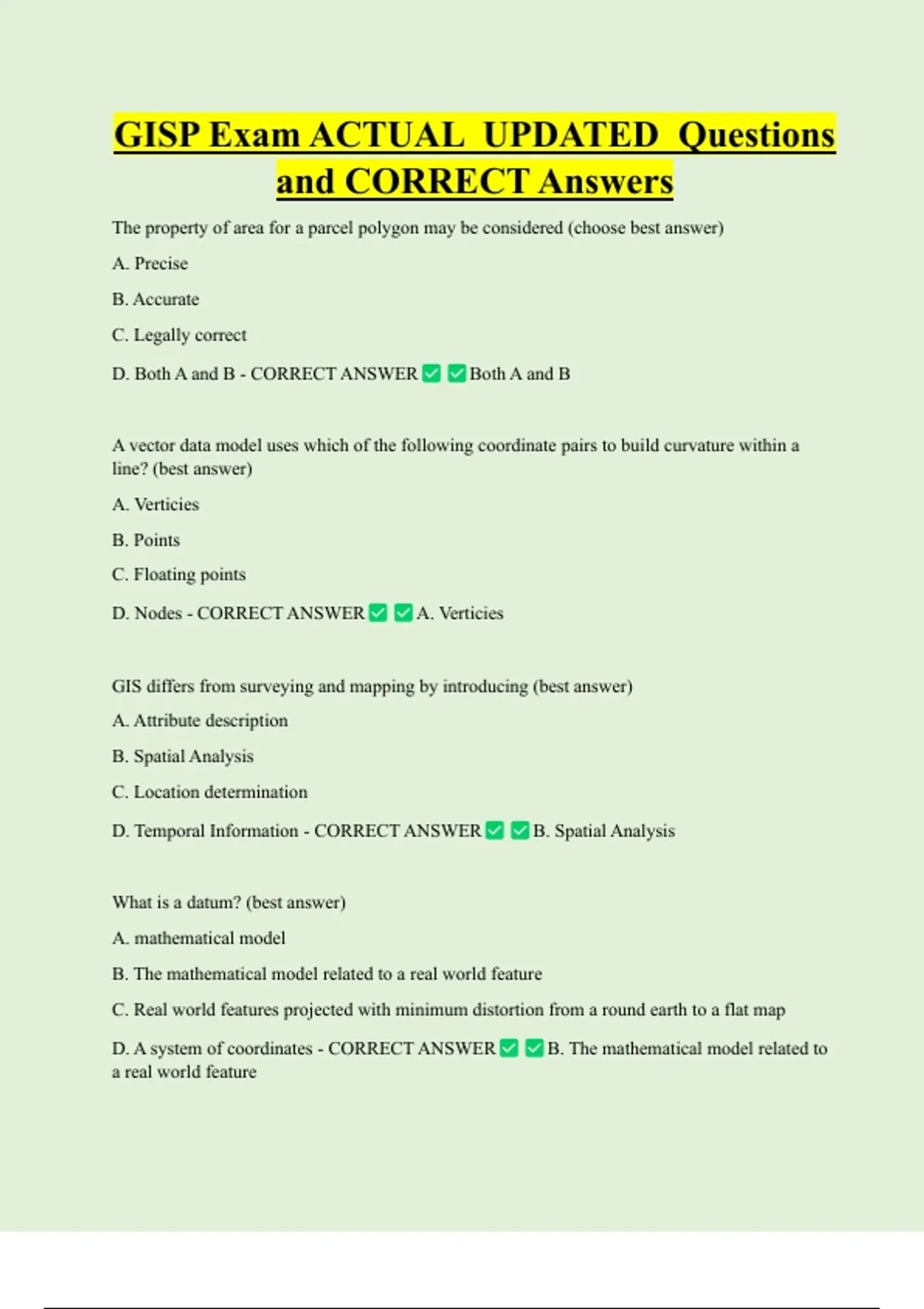 GISP Exam ACTUAL UPDATED Questions and CORRECT Answers