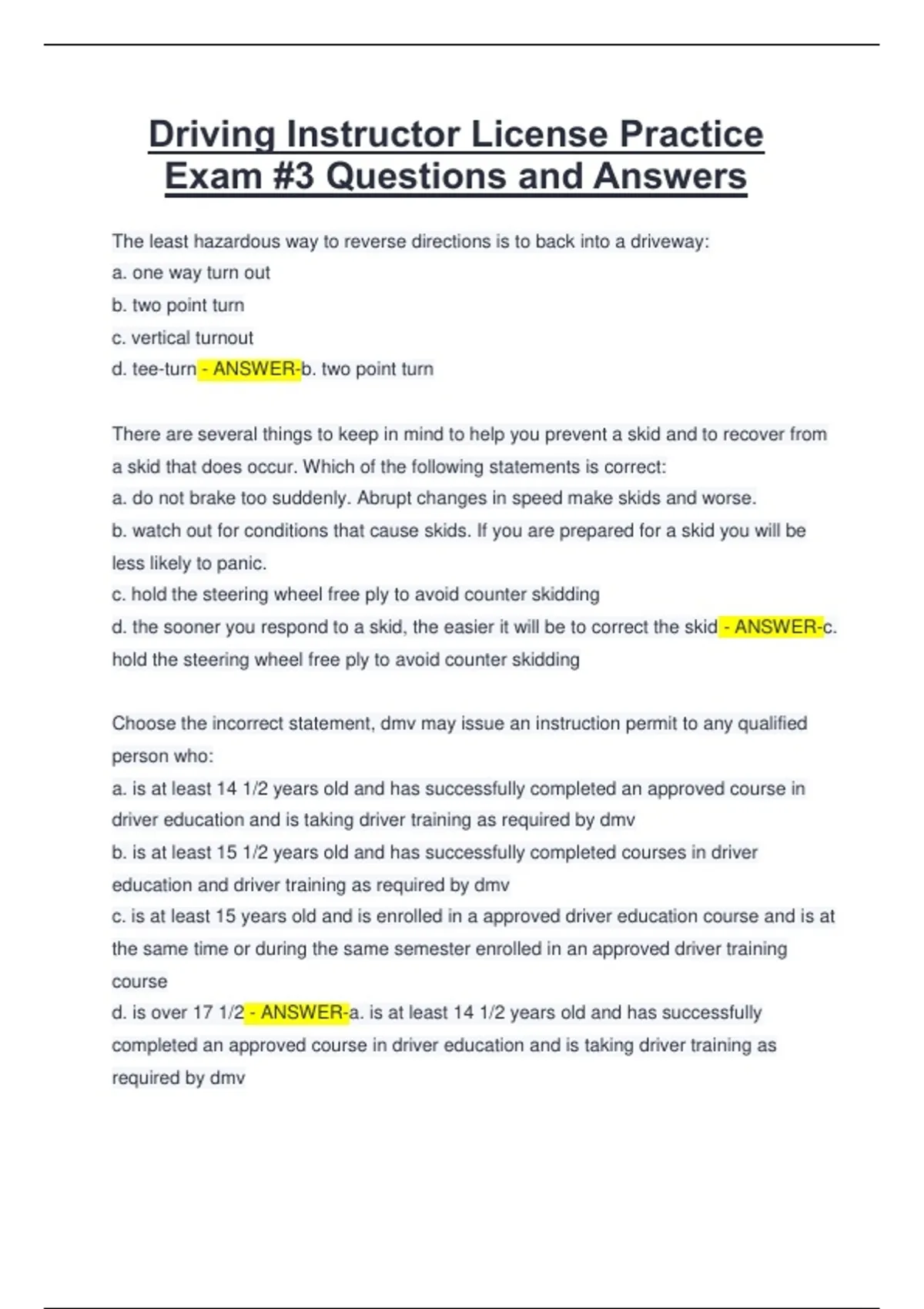 Driving Instructor License Practice