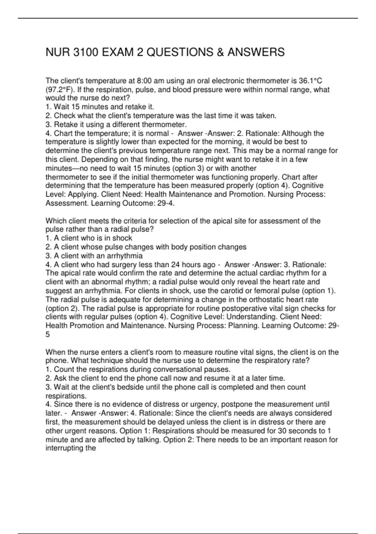 NUR 3100 EXAM 2 QUESTIONS & ANSWERS