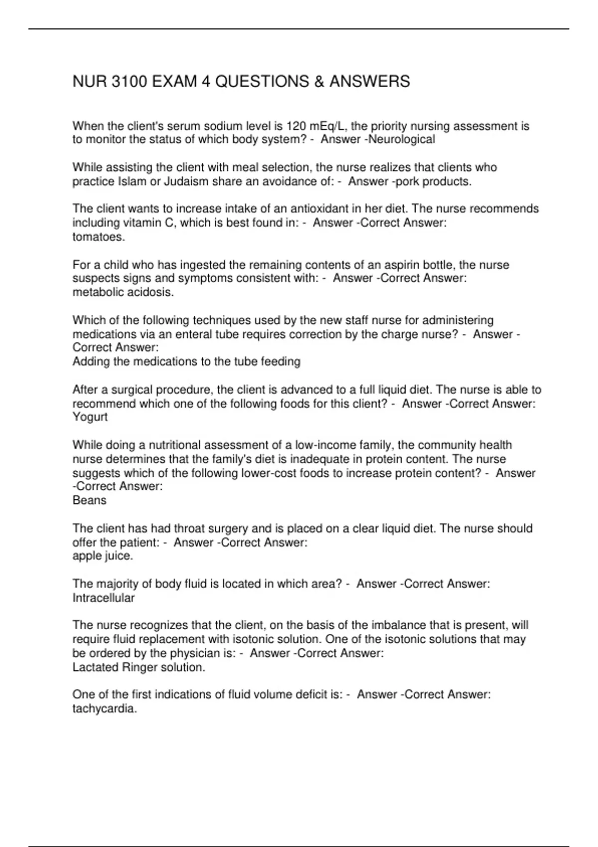 NUR 3100 EXAM 4 QUESTIONS & ANSWERS