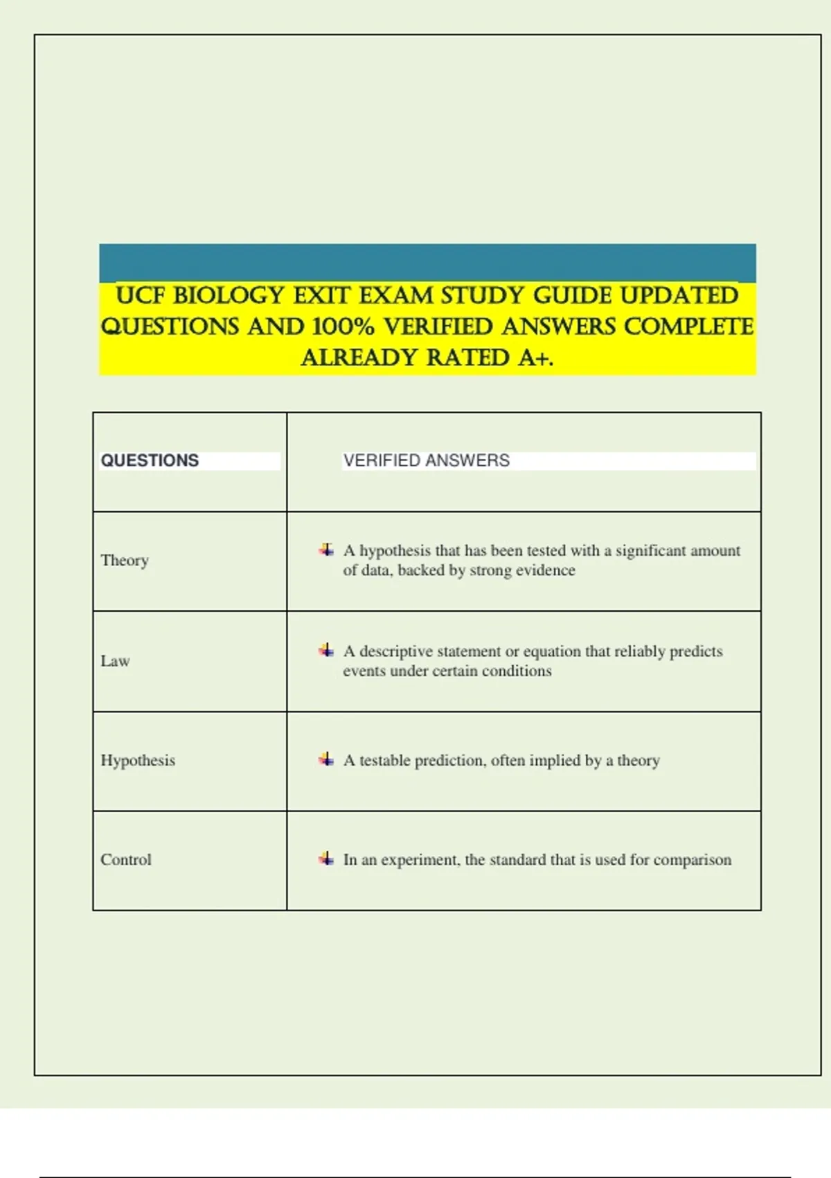 UCF BIOLOGY EXIT EXAM STUDY GUIDE UPDATED QUESTIONS AND 100% VERIFIED ANSWERS COMPLETE ALREADY RATED A+.