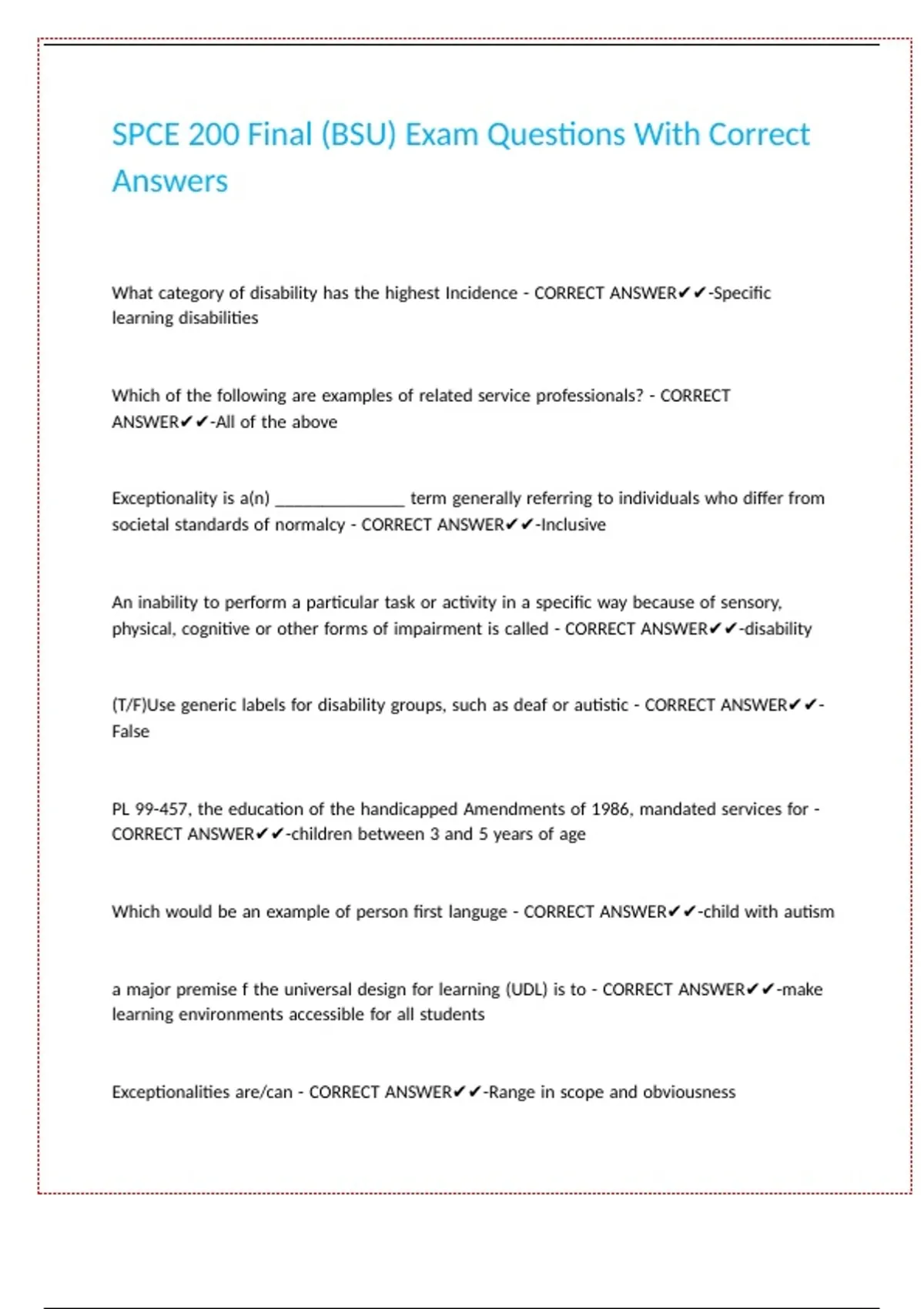 SPCE 200 Final (BSU) Exam Questions With Correct