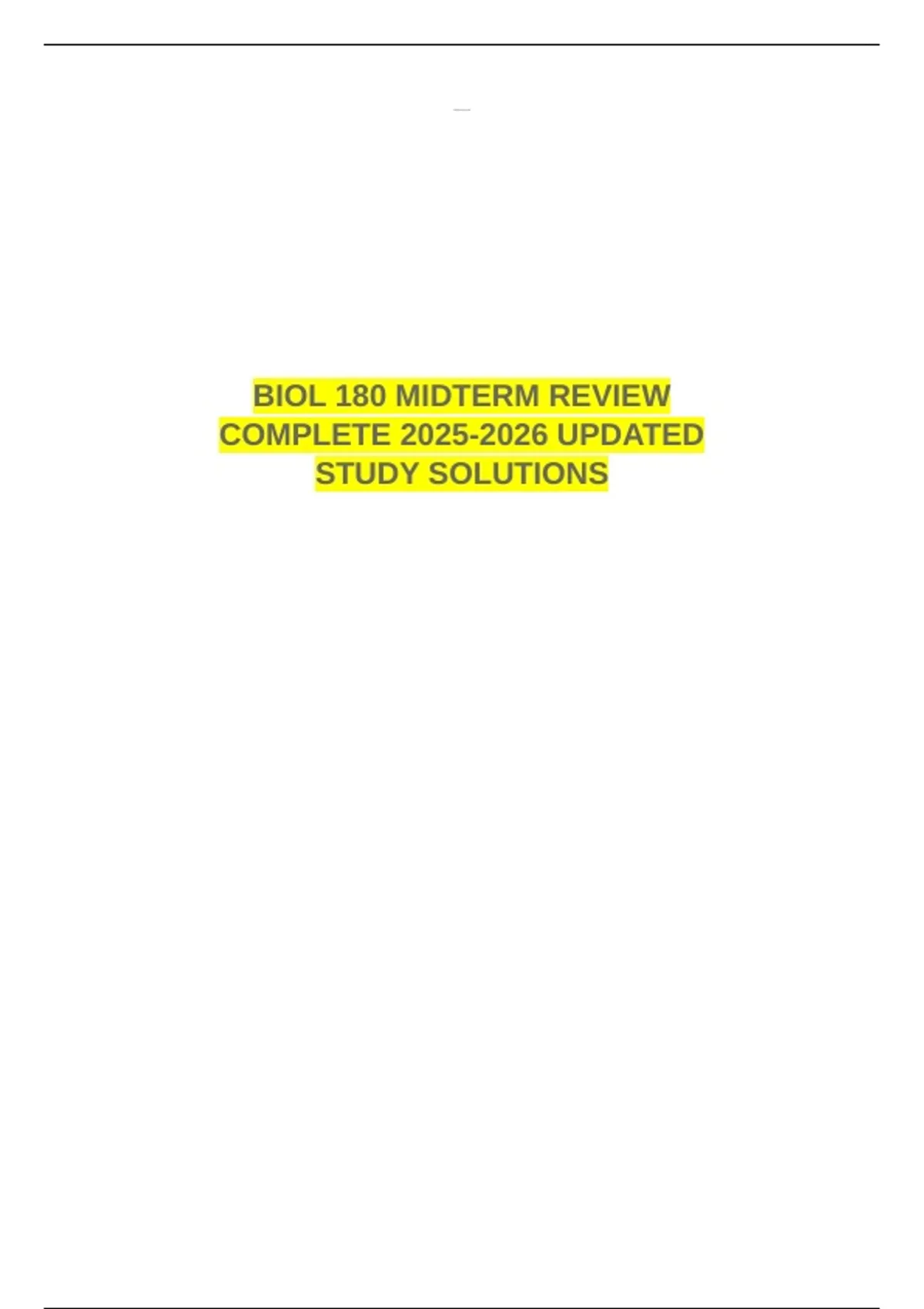 BIOL 180 MIDTERM REVIEW COMPLETE UPDATED STUDY SOLUTIONS