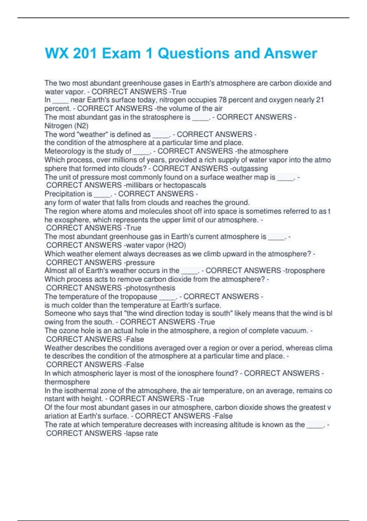 WX 201 Exam 1 Questions and Answer