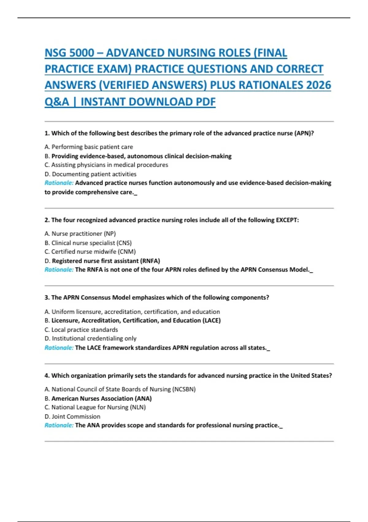 ANSWERS (VERIFIED ANSWERS) PLUS RATIONALES 2026