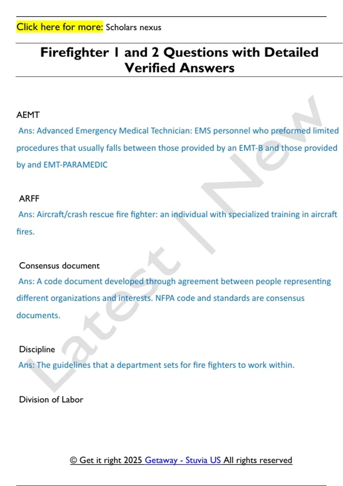 Firefighter 1 and 2 Questions with Detailed