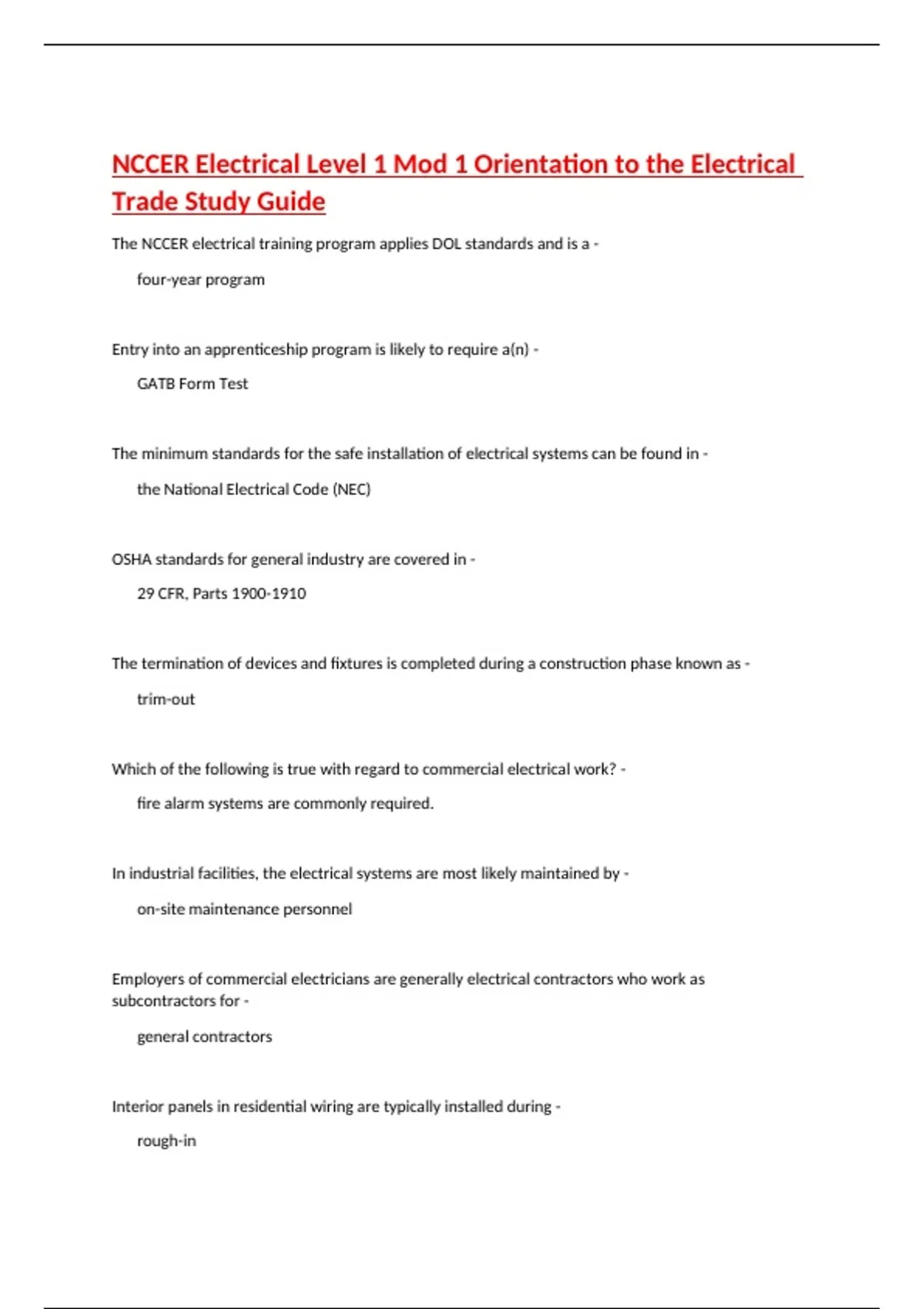 NCCER Electrical Level 1 Mod 1 Orientation to the Electrical