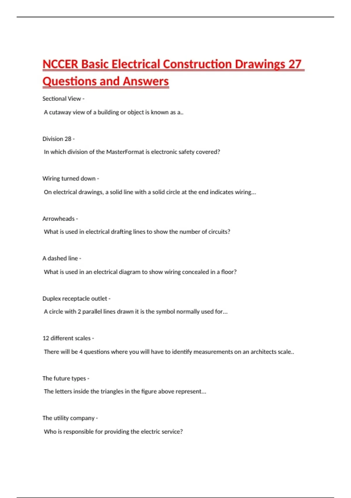 NCCER Basic Electrical Construction Drawings 27 Questions and Answers.