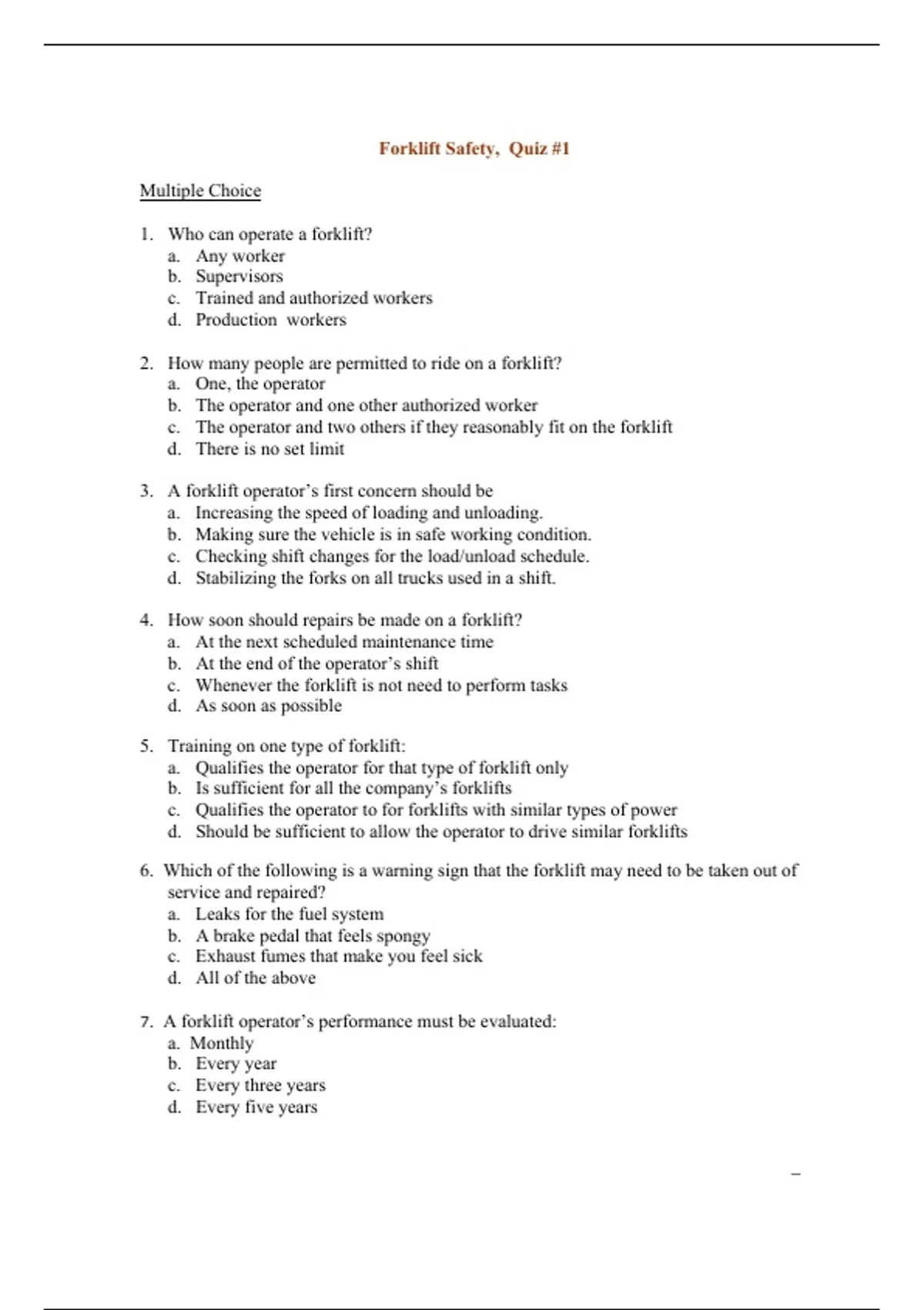 T F 1. It is necessary for every forklift operator to know the load capacity of the forklift to