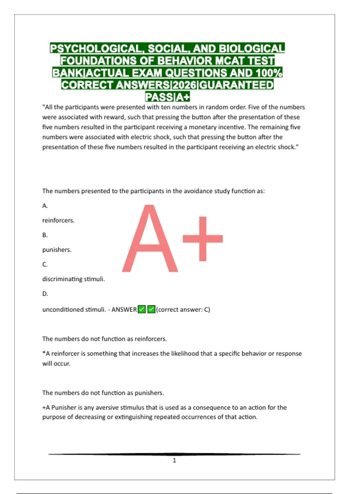unconditioned stimuli. - ANSWER (correct answer: C)