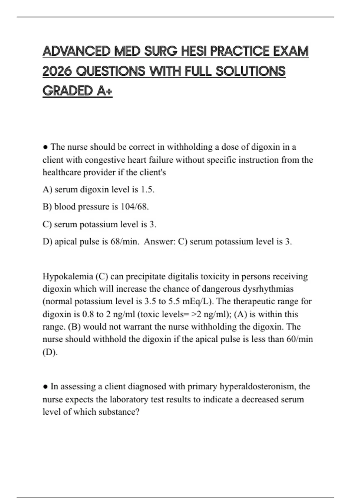 ADVANCED MED SURG HESI PRACTICE EXAM 2026 QUESTIONS WITH FULL SOLUTIONS GRADED A+