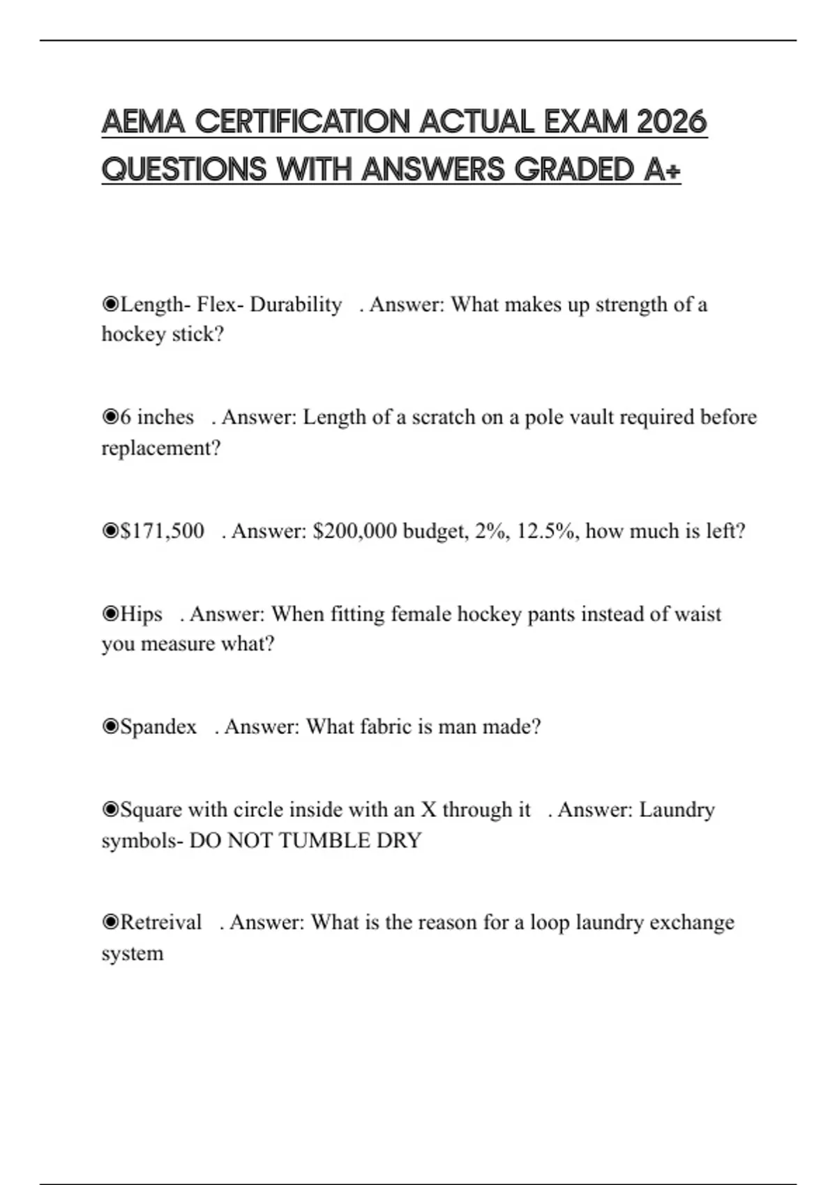AEMA CERTIFICATION ACTUAL EXAM 2026 QUESTIONS WITH ANSWERS GRADED A+