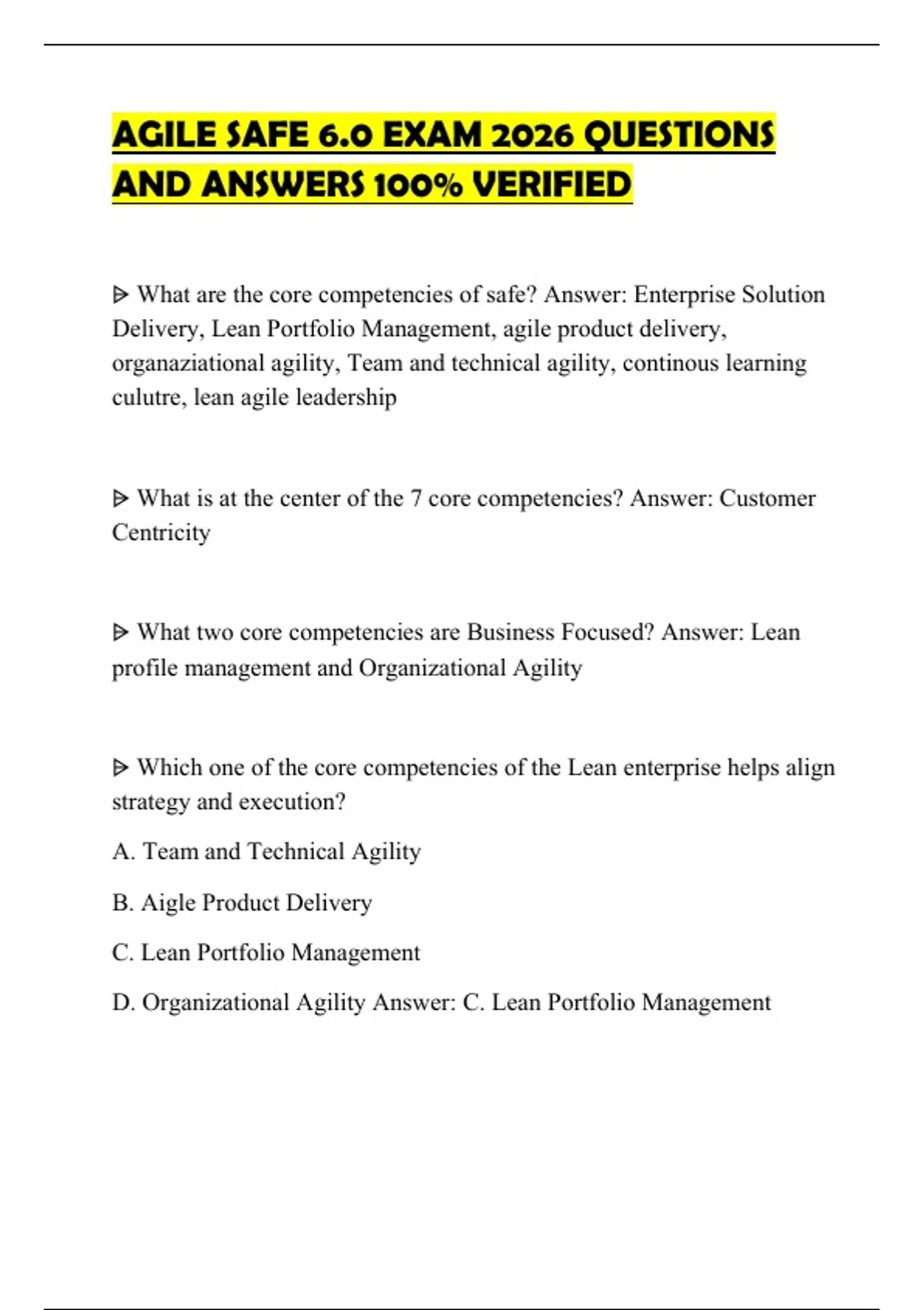 AGILE SAFE 6.0 EXAM 2026 QUESTIONS AND ANSWERS 100% VERIFIED