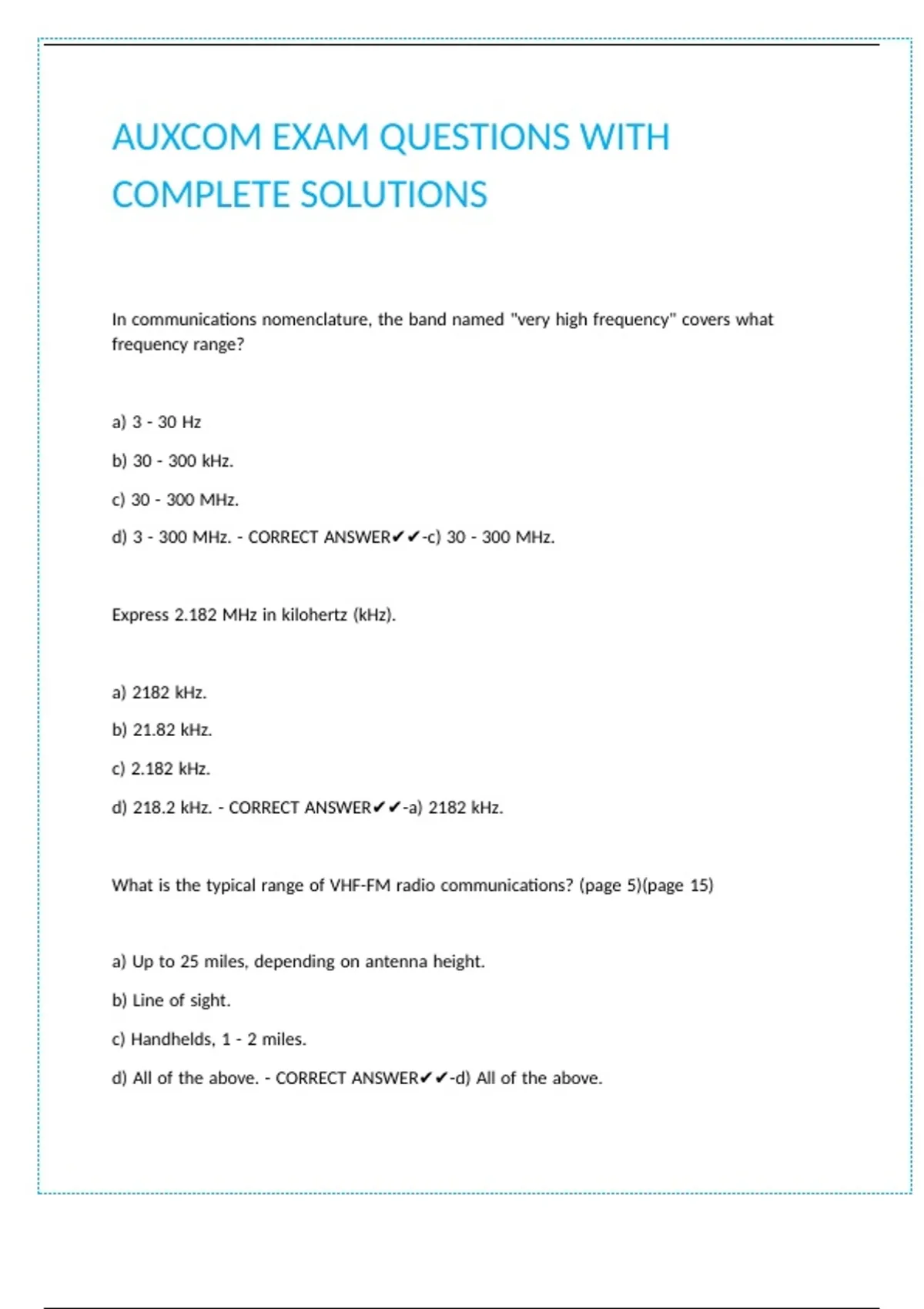 AUXCOM EXAM QUESTIONS WITH COMPLETE SOLUTIONS