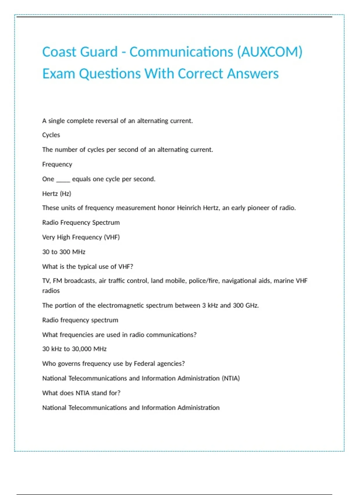 Coast Guard - Communications (AUXCOM) Exam Questions With Correct Answers.