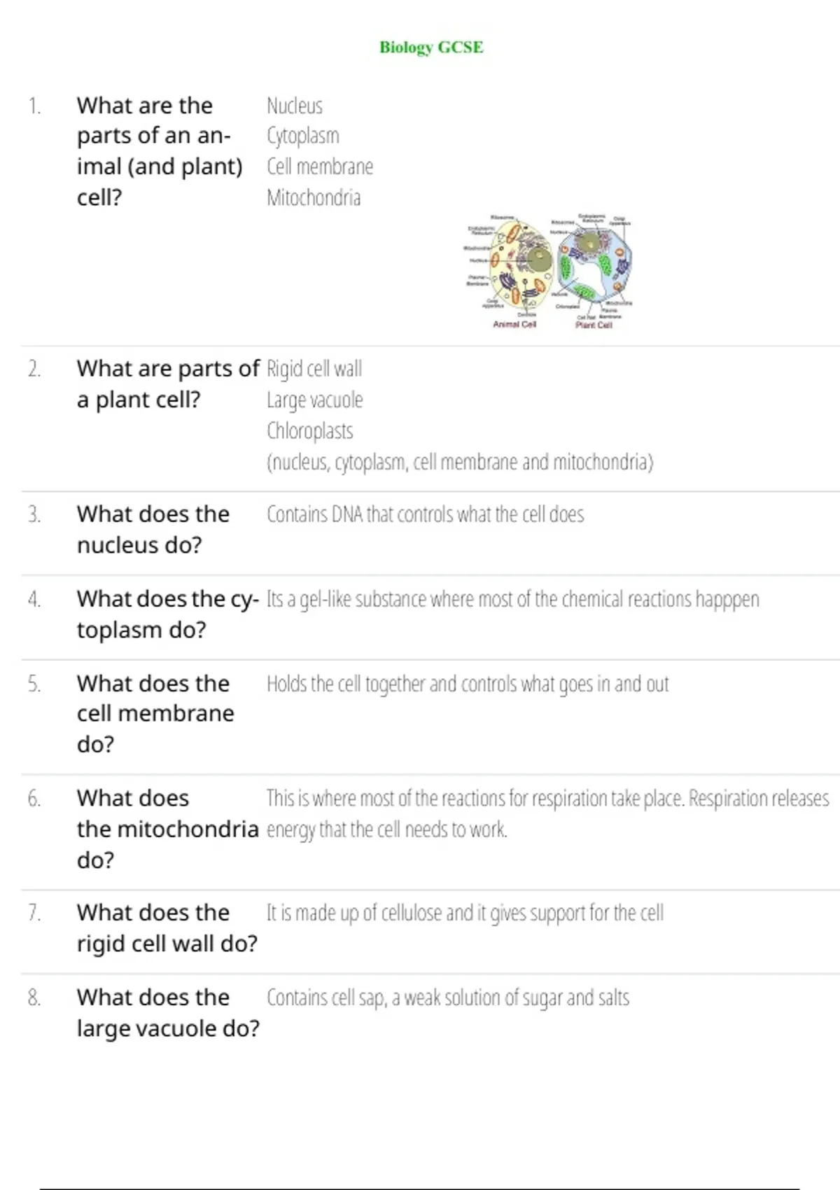 , Biology GCSE Biology GCSE