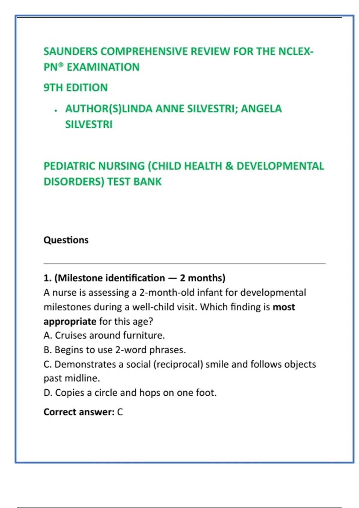 • Correct (C): At ~2 months infants commonly show a social