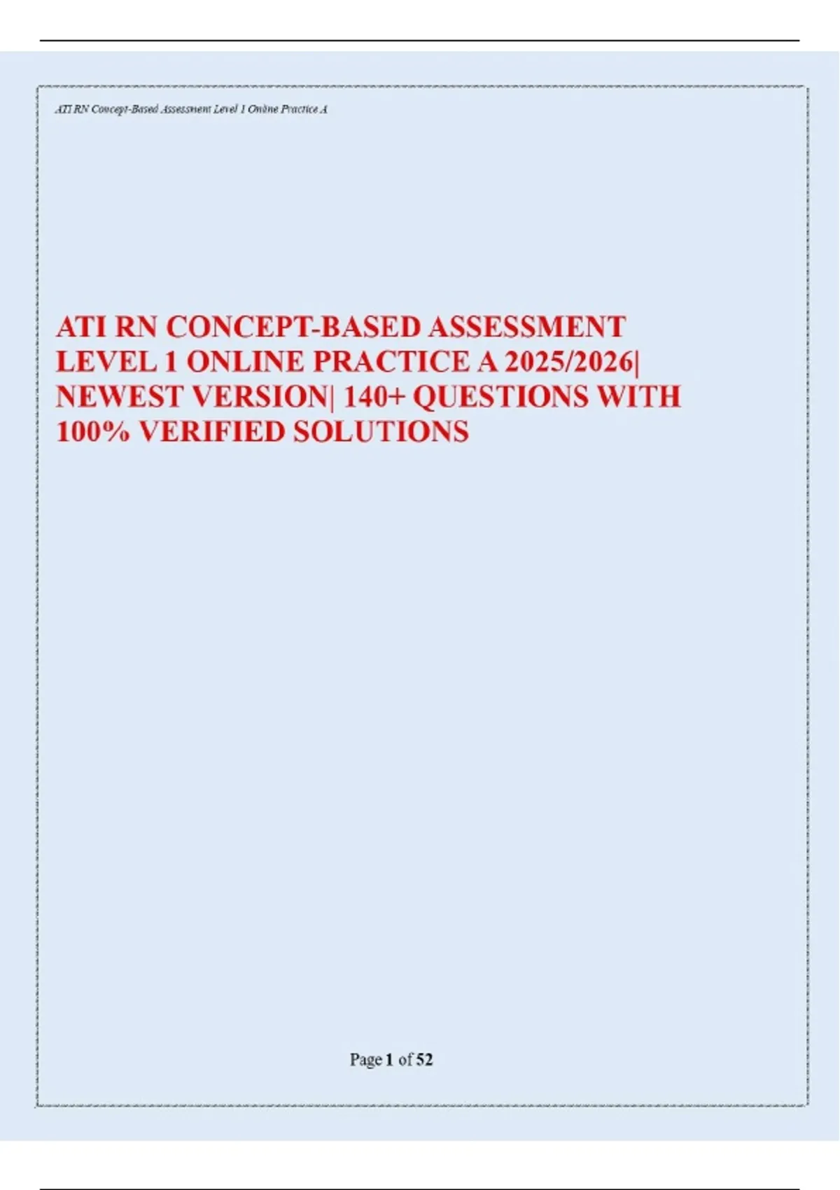 ATI RN CONCEPT-BASED ASSESSMENT LEVEL 1 ONLINE PRACTICE A 2025/2026| NEWEST VERSION| 140+ QUESTIONS WITH 100% VERIFIED SOLUTIONS