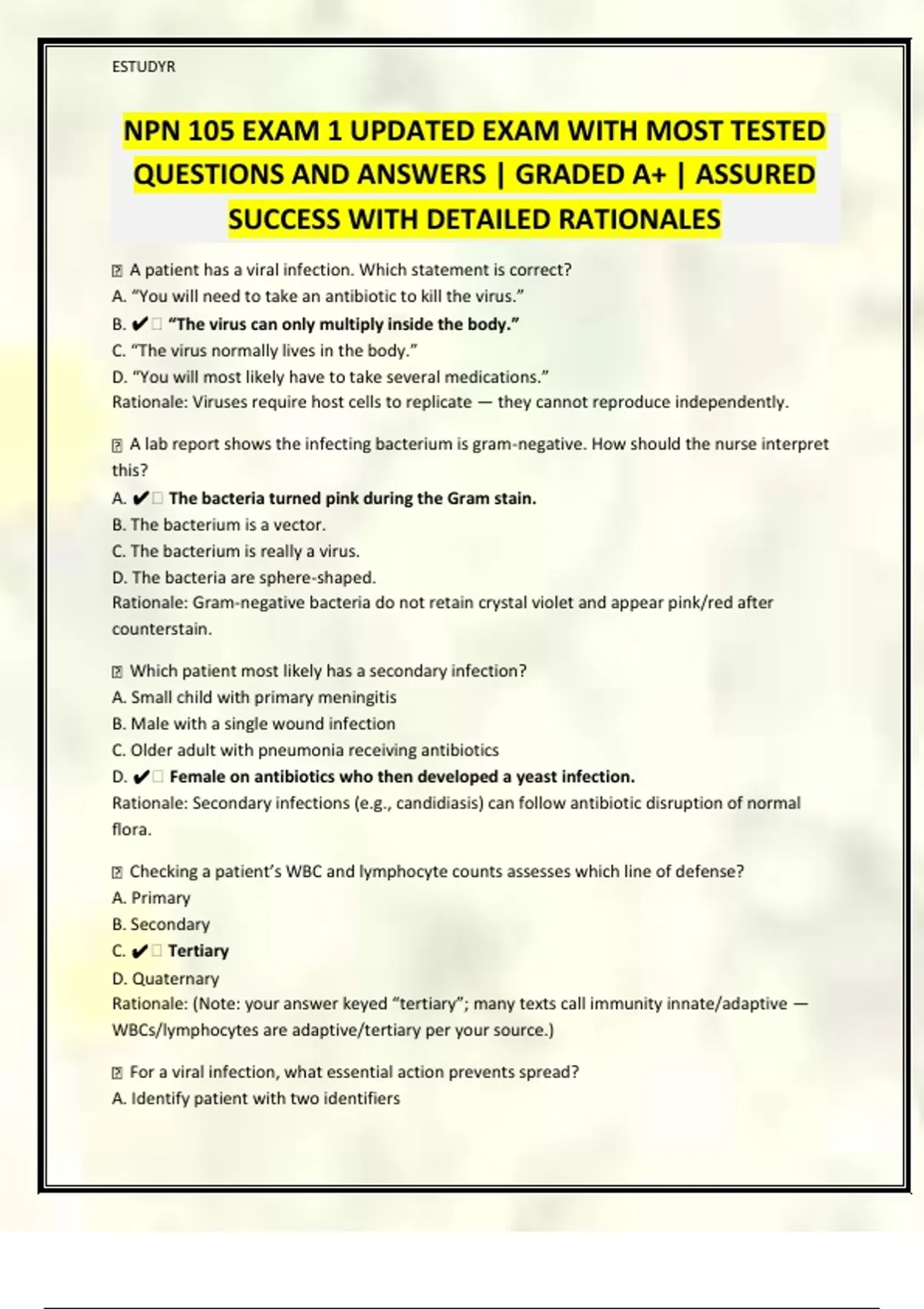 NPN 105 EXAM 1 UPDATED EXAM WITH MOST TESTED QUESTIONS AND ANSWERS | GRADED A+ | ASSURED SUCCESS WITH DETAILED RATIONALES