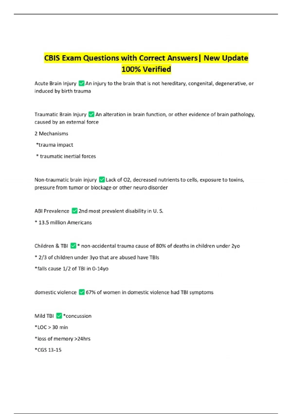 CBIS Exam Questions with Correct Answers| New Update 100% Verified