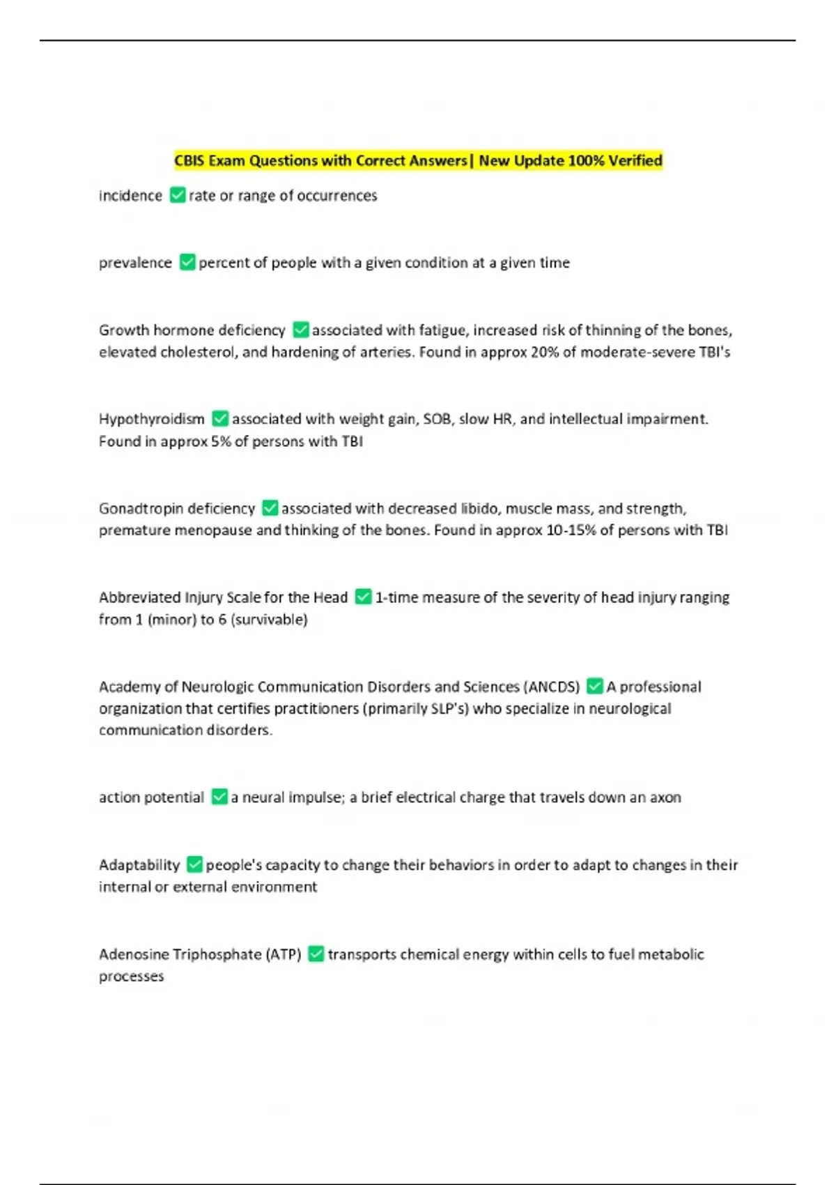 CBIS Exam Questions with Correct Answers| New Update 100% Verified
