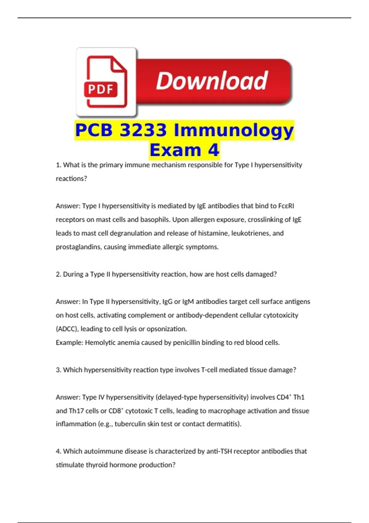 PCB 3233 Immunology Exam 4 questions with correct answers