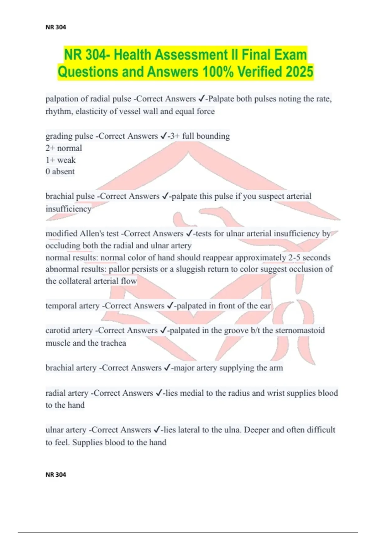 NR 304- Health Assessment II Final Exam Questions and Answers 100% Verified 2025