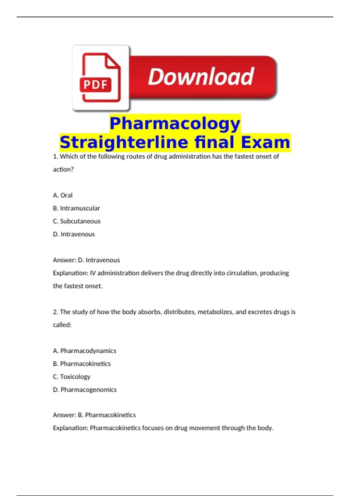 Answer: B. Pharmacokinetics