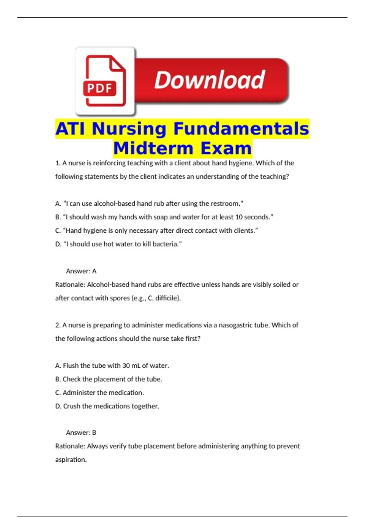 1. A nurse is reinforcing teaching with a client about hand hygiene. Which of the